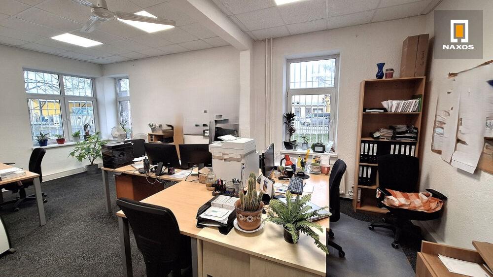 Předmětem prodeje je administrativně – obchodní areál, sestávající ze čtyřpodlažní administrativní budovy, jednopodlažního objektu s kancelářemi a jednopodlažního objektu, který nyní slouží jako kantýna a přípravna jídel. Celkem areál nabízí 514 m2 užitných ploch.