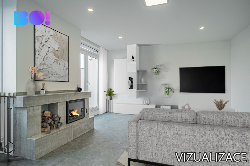 Dominantou domu je světlý obytný prostor s krbem, který vytváří příjemnou atmosféru domova. Krb je navíc napojen na dva průduchy, má platnou revizi a doplněn je také o venkovní krb, ideální pro posezení s rodinou a přáteli na zahradě.