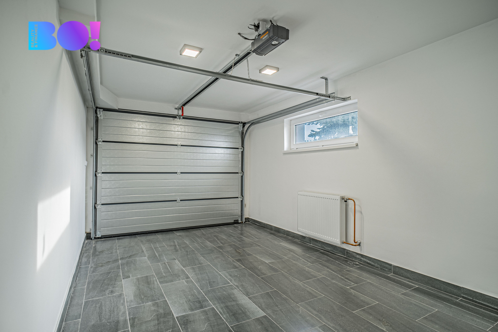 Součástí domu je garáž s elektricky ovládanými vraty, se suchým vstupem přímo do domu, což výrazně zvyšuje komfort bydlení.