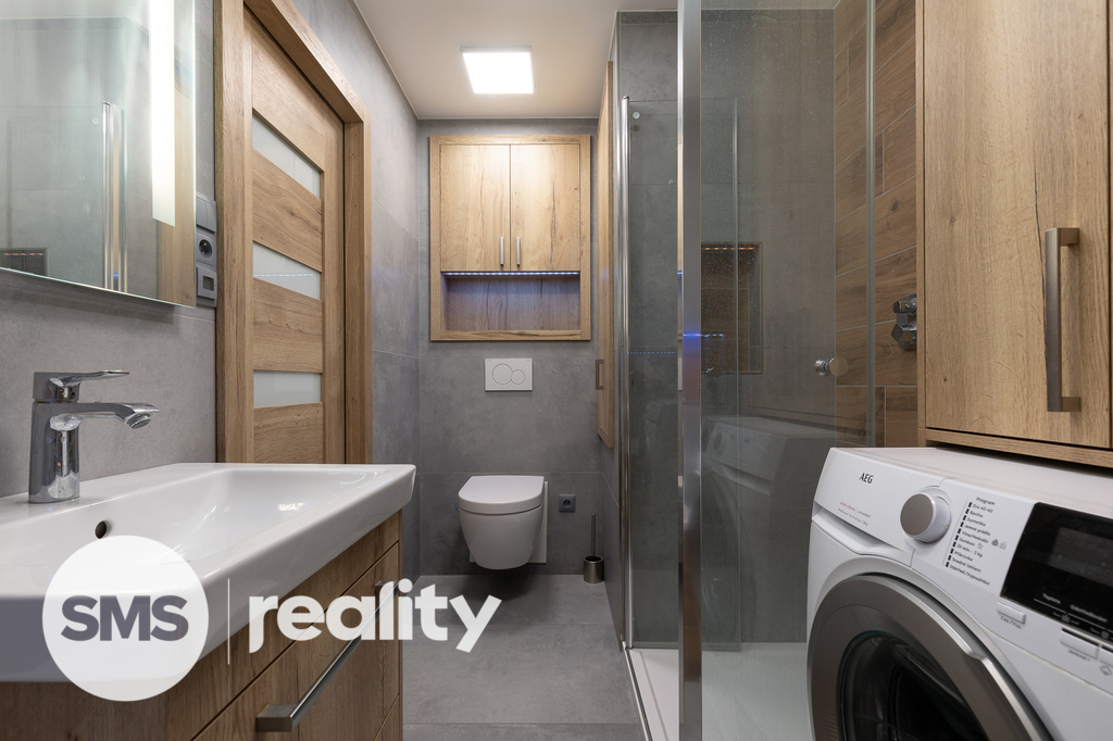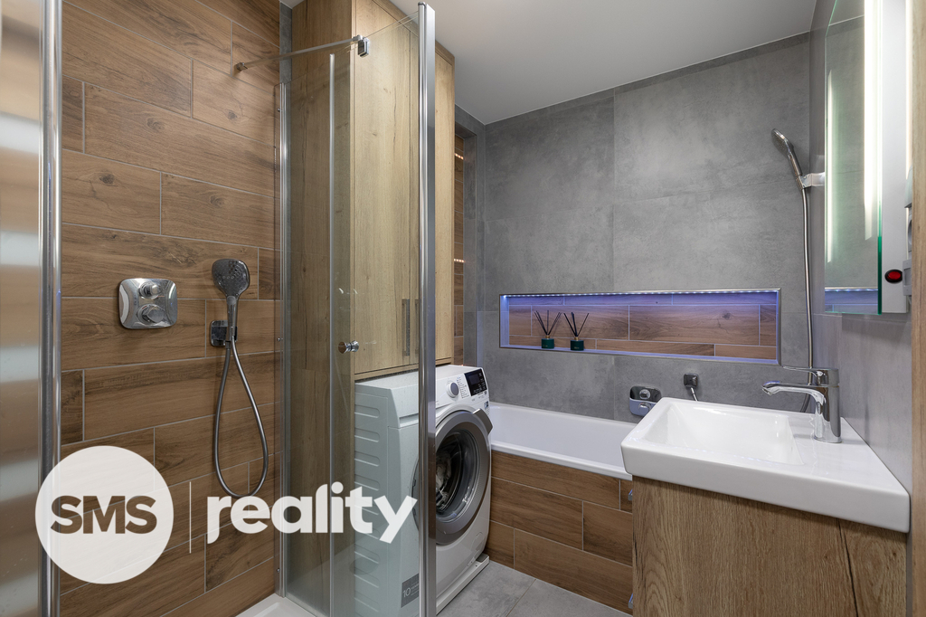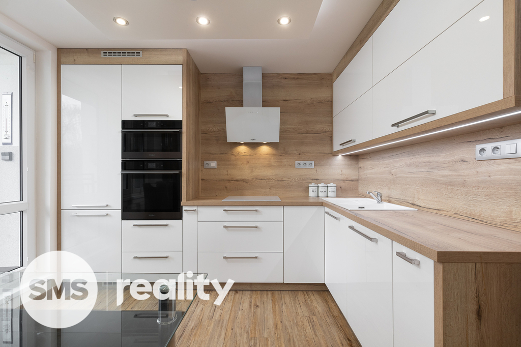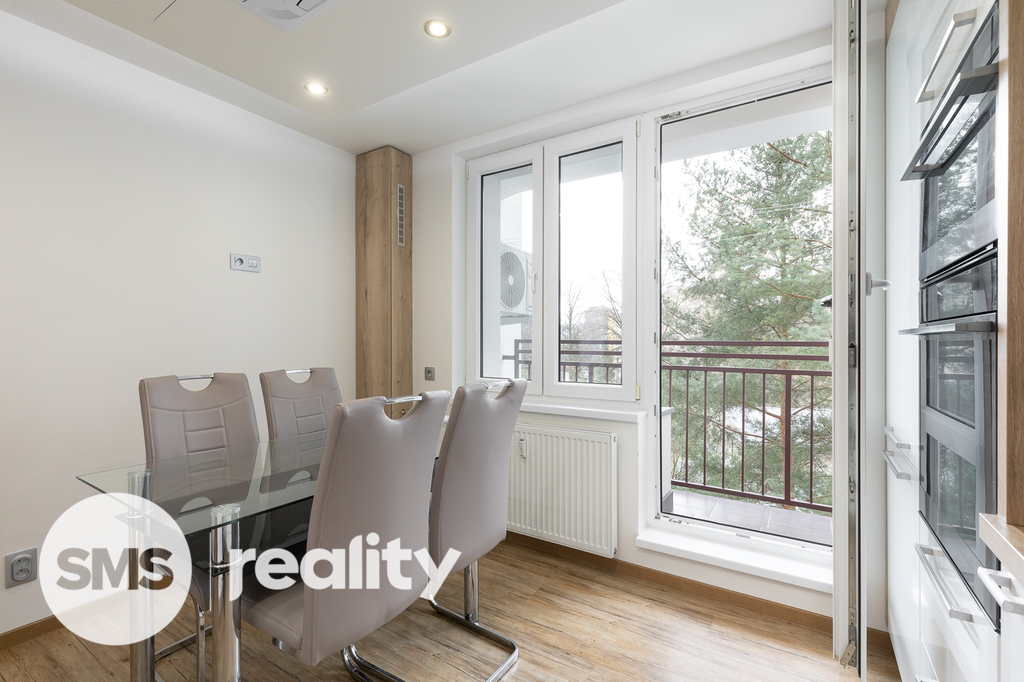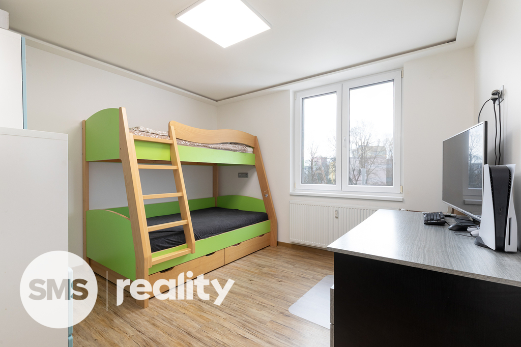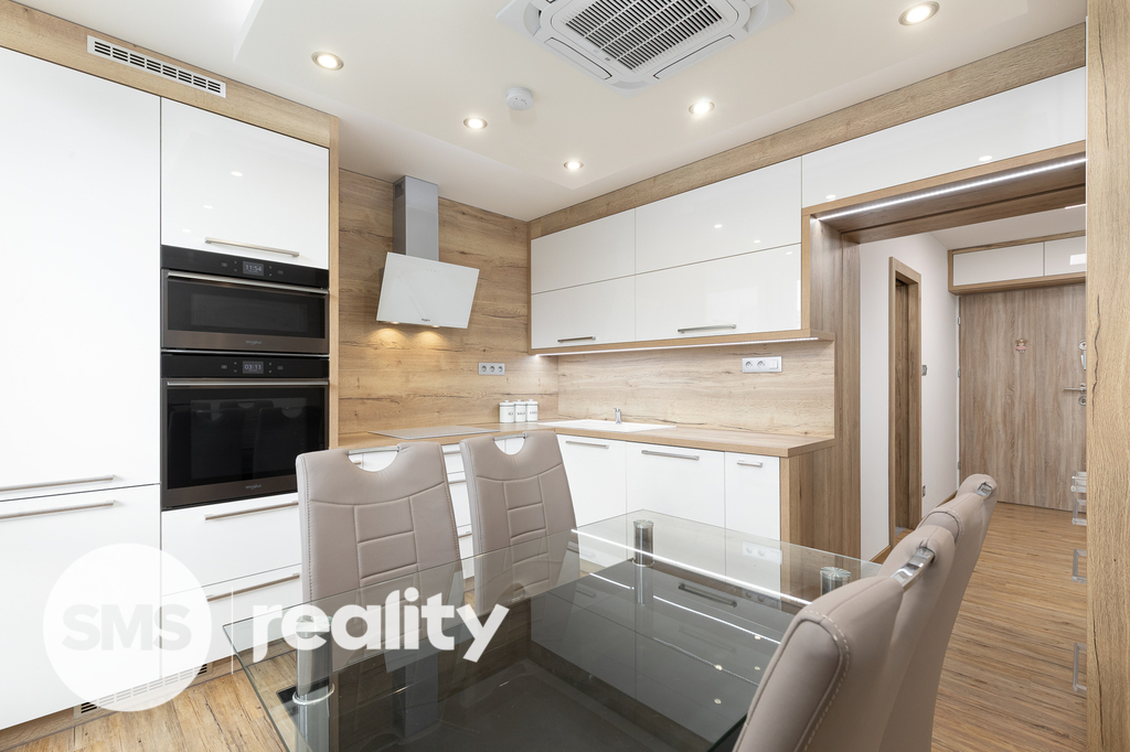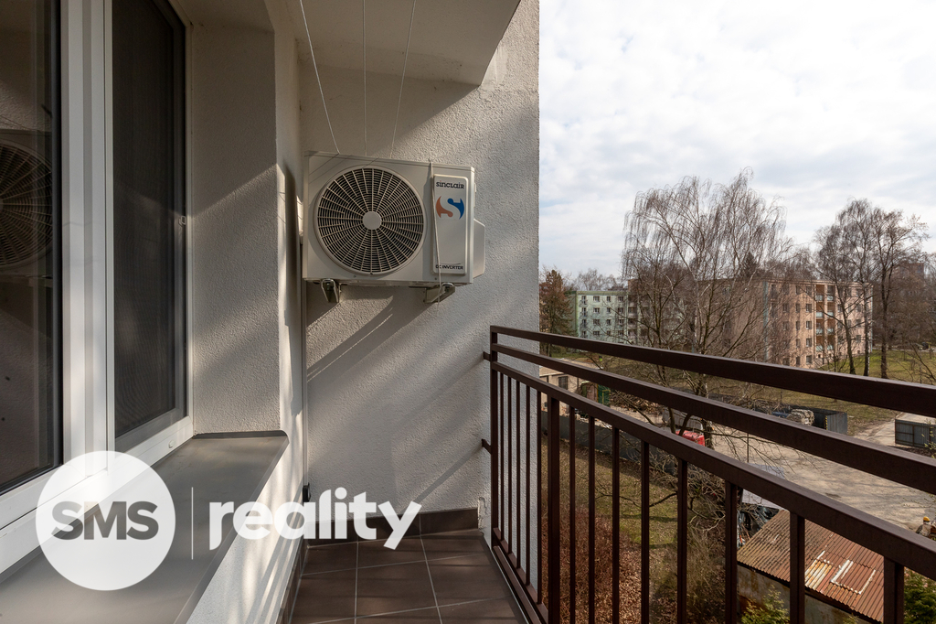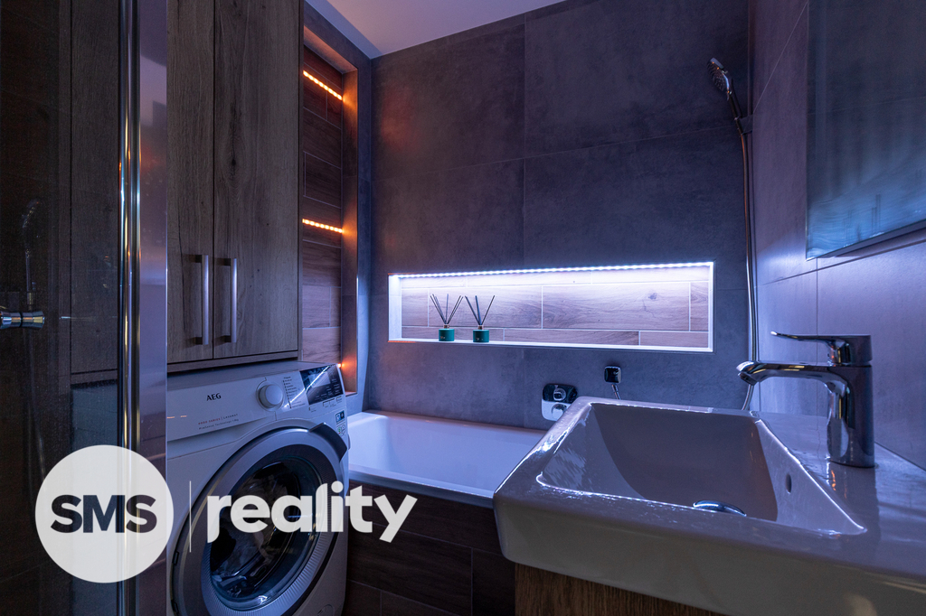 Nově nabízíme byt v družstevním vlastnictví, který se nachází ve 4. nadzemním podlaží panelového domu na ulici Petruškova v Ostravě - Zábřehu. Celková plocha bytu včetně balkónu a sklepní kóje činí 70,4m2. Byt prošel před rokem nákladnou rekonstrukcí – sádrokartonové podhledy s osvětlením, vinylové podlahy, klimatizace, kuchyně na míru, kvalitní spotřebiče (indukční deska, el. trouba, mikrovlnná trouba, myčka, digestoř, granitový dřez), bezpečnostní dveře a praktické vestavěné úložné prostory. Koupelna je vybavena bezbariérovým sprchovým koutem, ale také vanou. Součástí je také umyvadlo se zrcadlem a skříňkou, prostor na pračku a sušičku. Klidnou atmosféru doplní LED osvětlení. Z prostorné chodby je přímý vstup do dětského a obývacího pokoje s dalšími úložnými prostory. Ložnice je situována v zadní části bytu. Balkón nabízí příjemný výhled do zeleně, je zde také připraveno připojení pro elektrický gril.