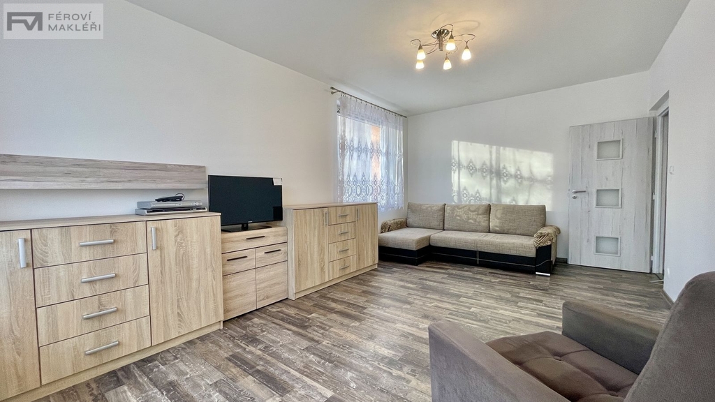 - moderní kuchyň, velký pokoj s TV, koupelna se sprchovým koutem a pračkou, samostatná toaleta, praktická komora, velká chodba