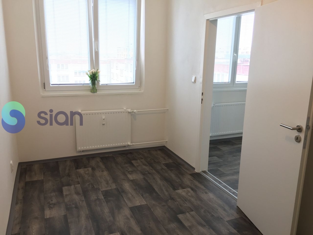 Byt je po rekonstrukci a má vyzděné jádro, podlahy, rozvody, omítky, interiérové dveře. Koupelna s vanou a umyvadlem s osvětlením, toaleta je součástí koupelny oddělená přepážkou. Kuchyňská linka je opatřena plynovým sporákem a elektrickou troubou s možností připojení pračky.