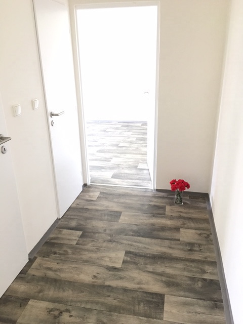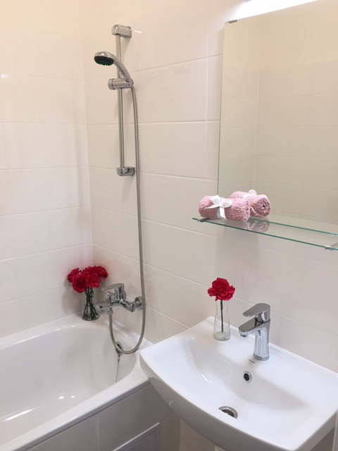 Byt má vyzděné jádro, podlahy, rozvody, omítky, interiérové dveře. Koupelna s vanou a umyvadlem s místem pro připojením pračky, toaleta je odděleně.