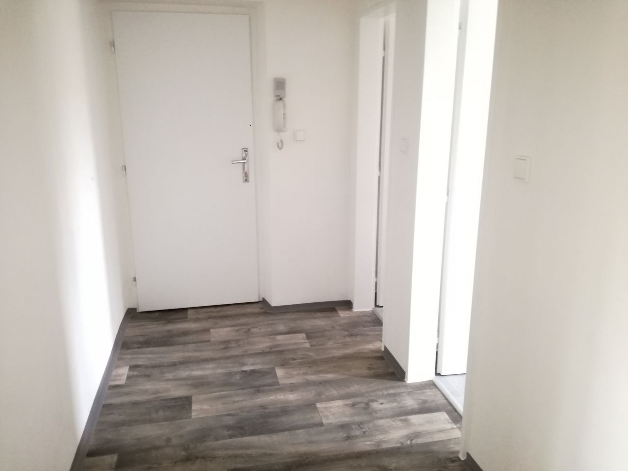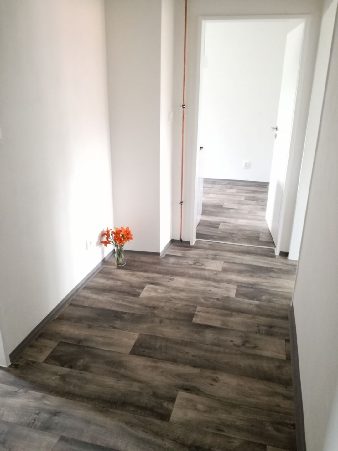 Byt má vyzděné jádro, podlahy, rozvody, omítky, interiérové dveře.