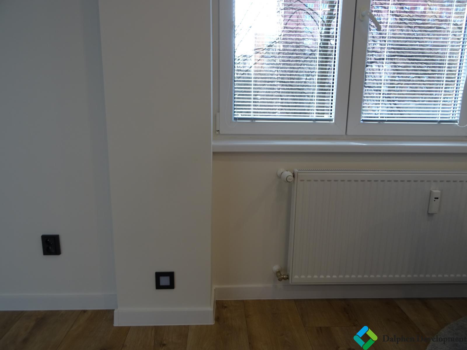 Topení: Nové deskové radiátory s přívody ve zdi, stupačky zaklopené sádrokartonem