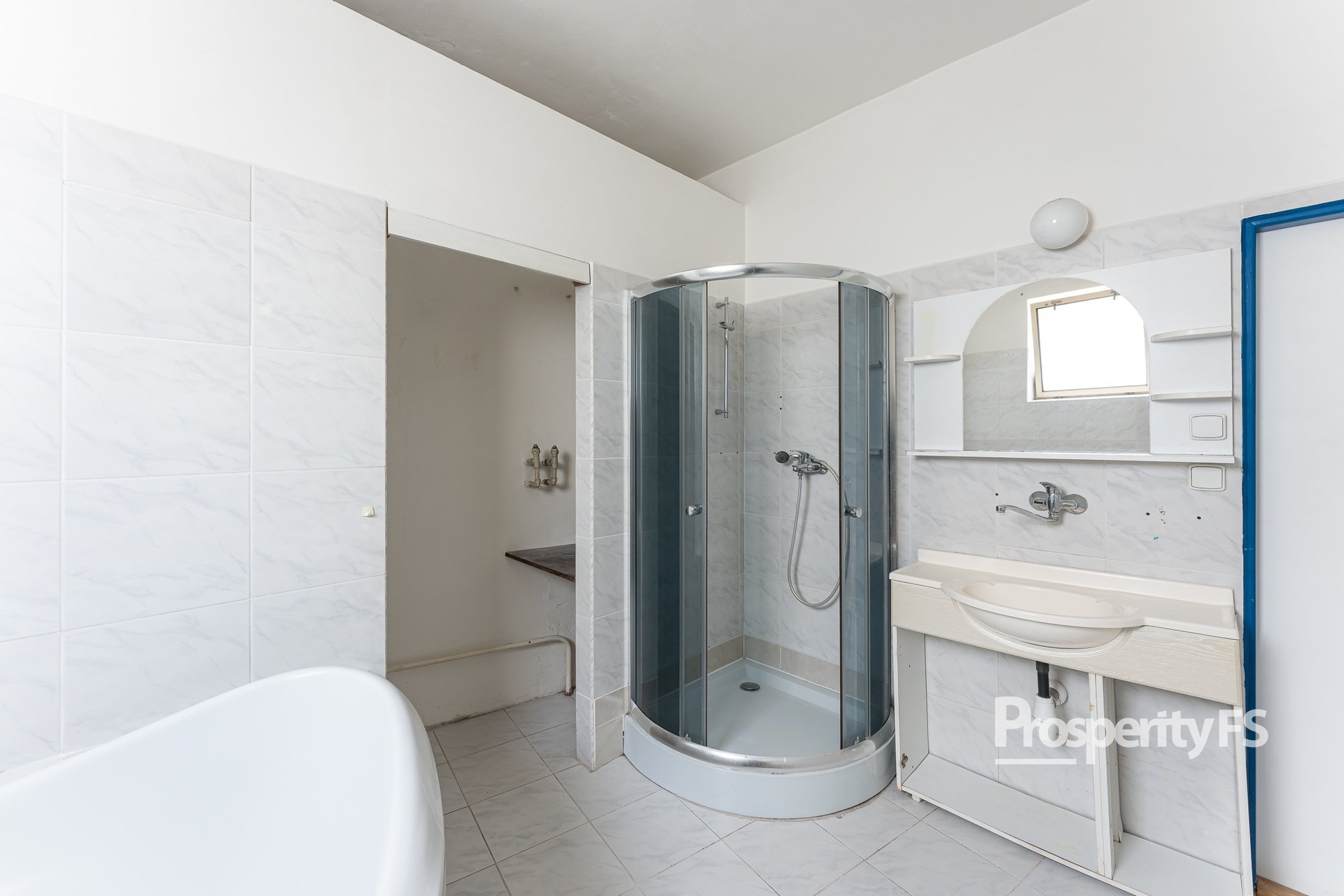 - Nebytové prostory v prvním patře – dříve využívané jako salon, nyní připravené k novému účelu.