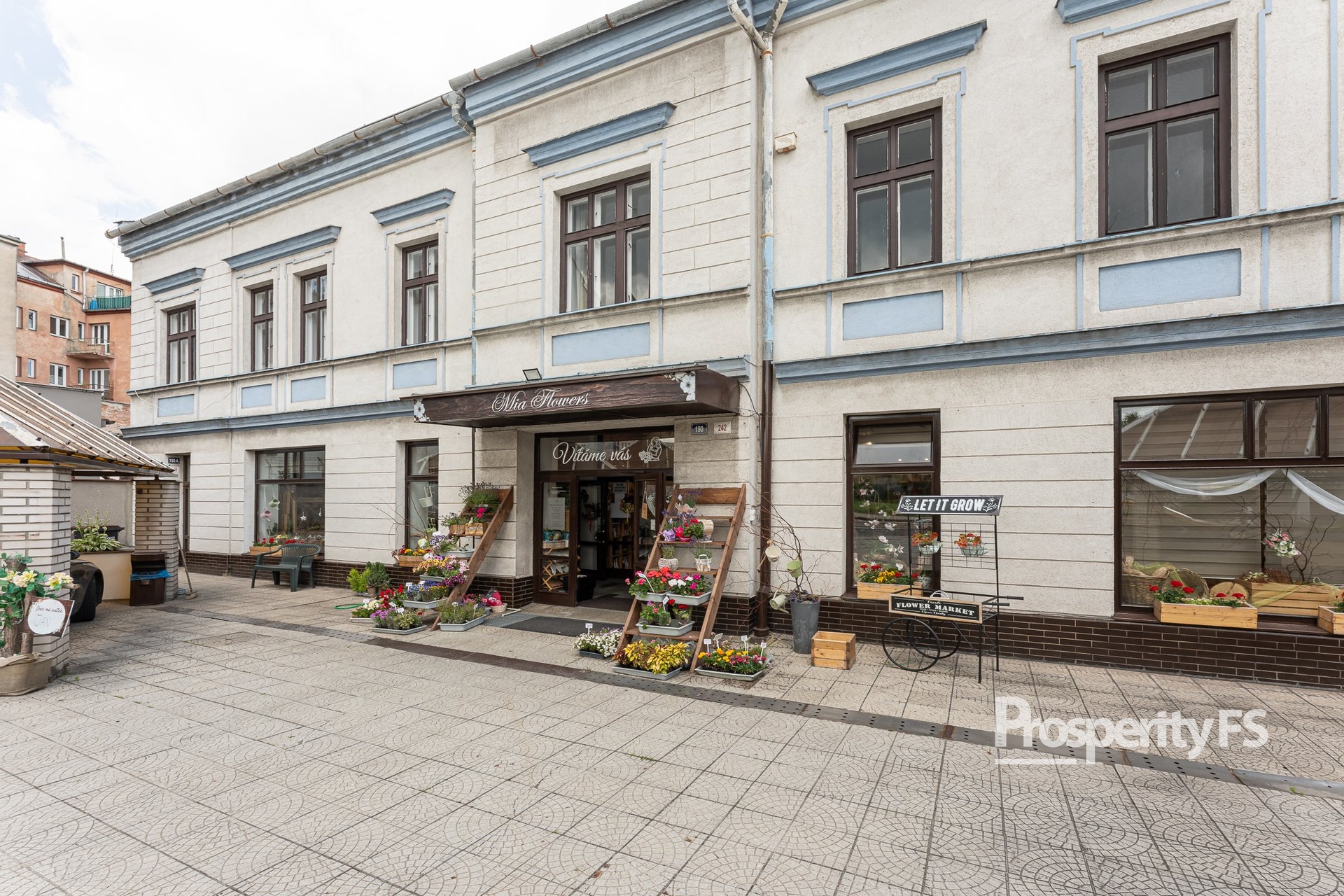 - Zavedené květinářství v přízemí (198,93 m² včetně 50 m² sklepu) – dlouhodobě fungující provoz s nájemní smlouvou. Stabilní příjem a jistota pro investora.