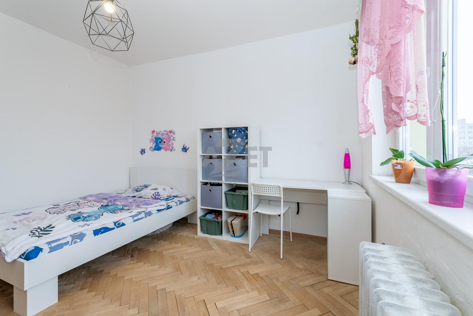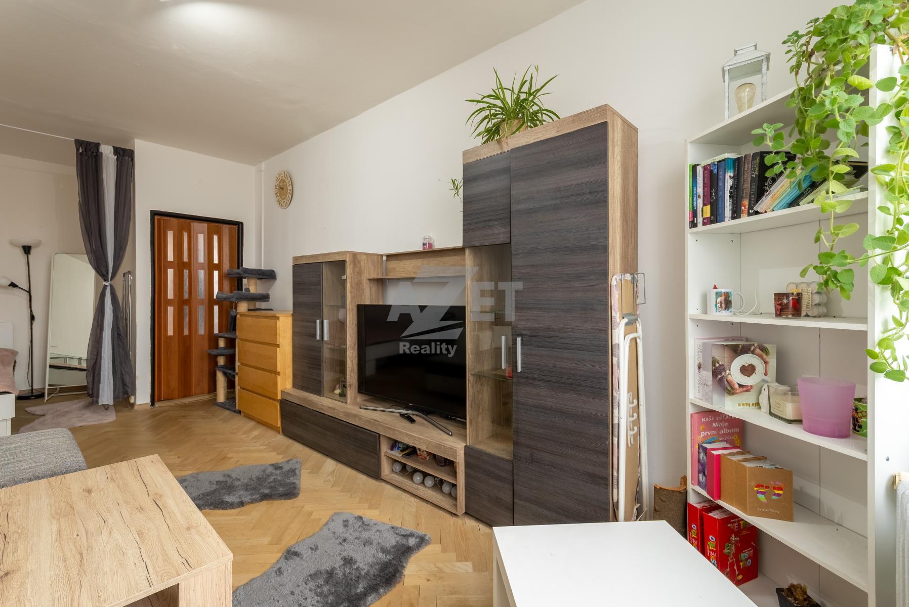 Byt nabízí zajímavý potenciál pro úpravu dispozice například vybudování šatny nebo pracovního koutku v obývacím pokoji.