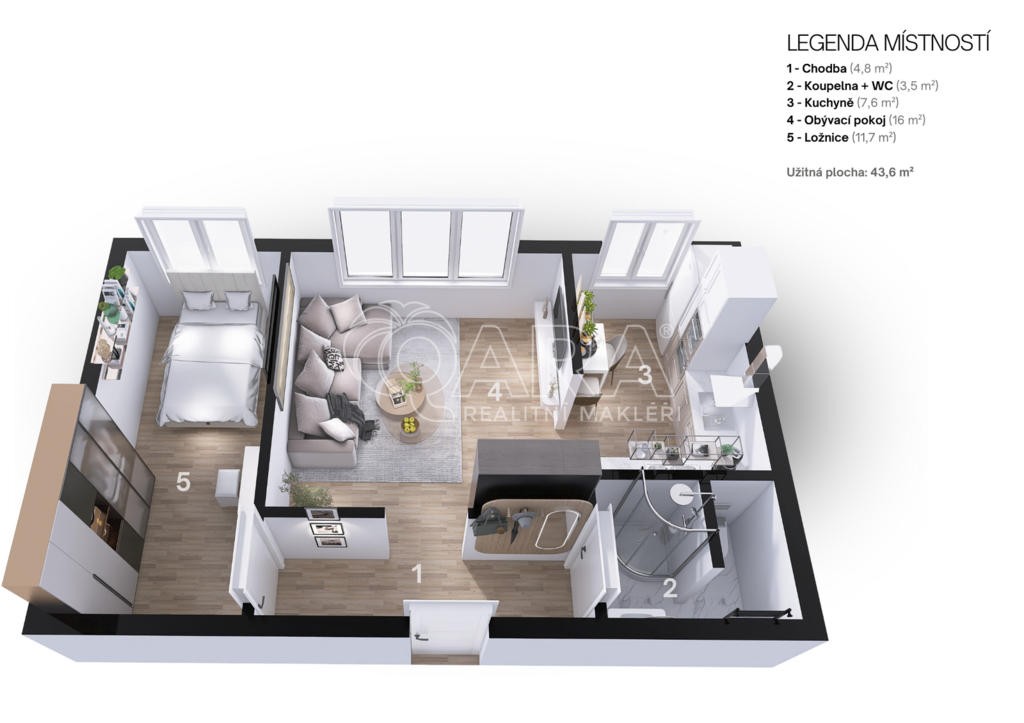 Nabízíme k prodeji byt v osobním vlastnictví o dispozici 2+1 s užitnou plochou 44 m², umístěný v 6. nadzemním podlaží domu s výtahem. Dispozice je praktická, byt působí příjemně světle a vzdušně – velká okna pouští do interiéru dostatek denního světla během celého dne. K bytu také náleží sklepní kóje.