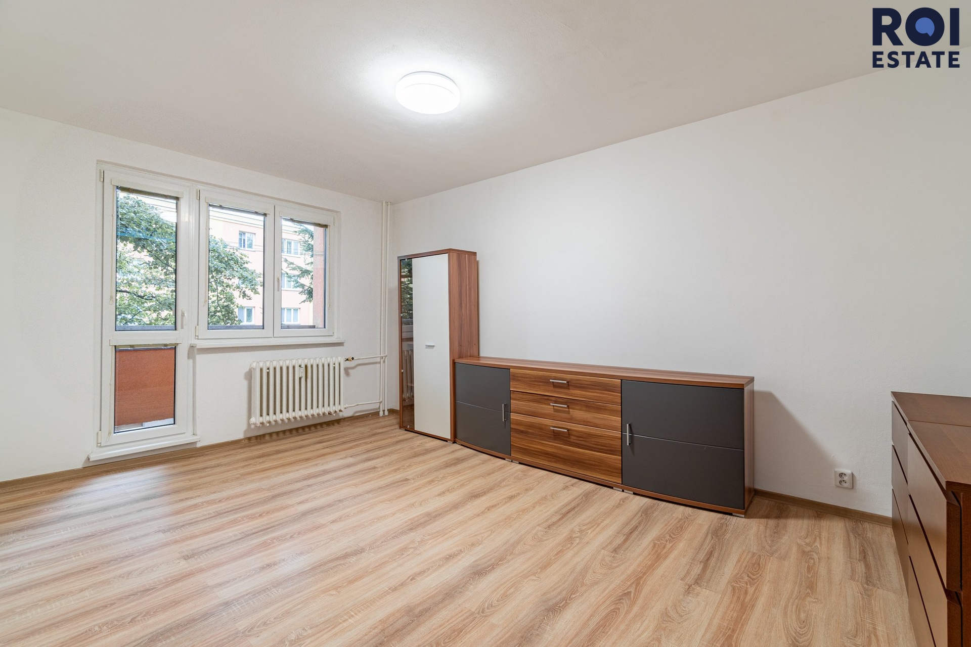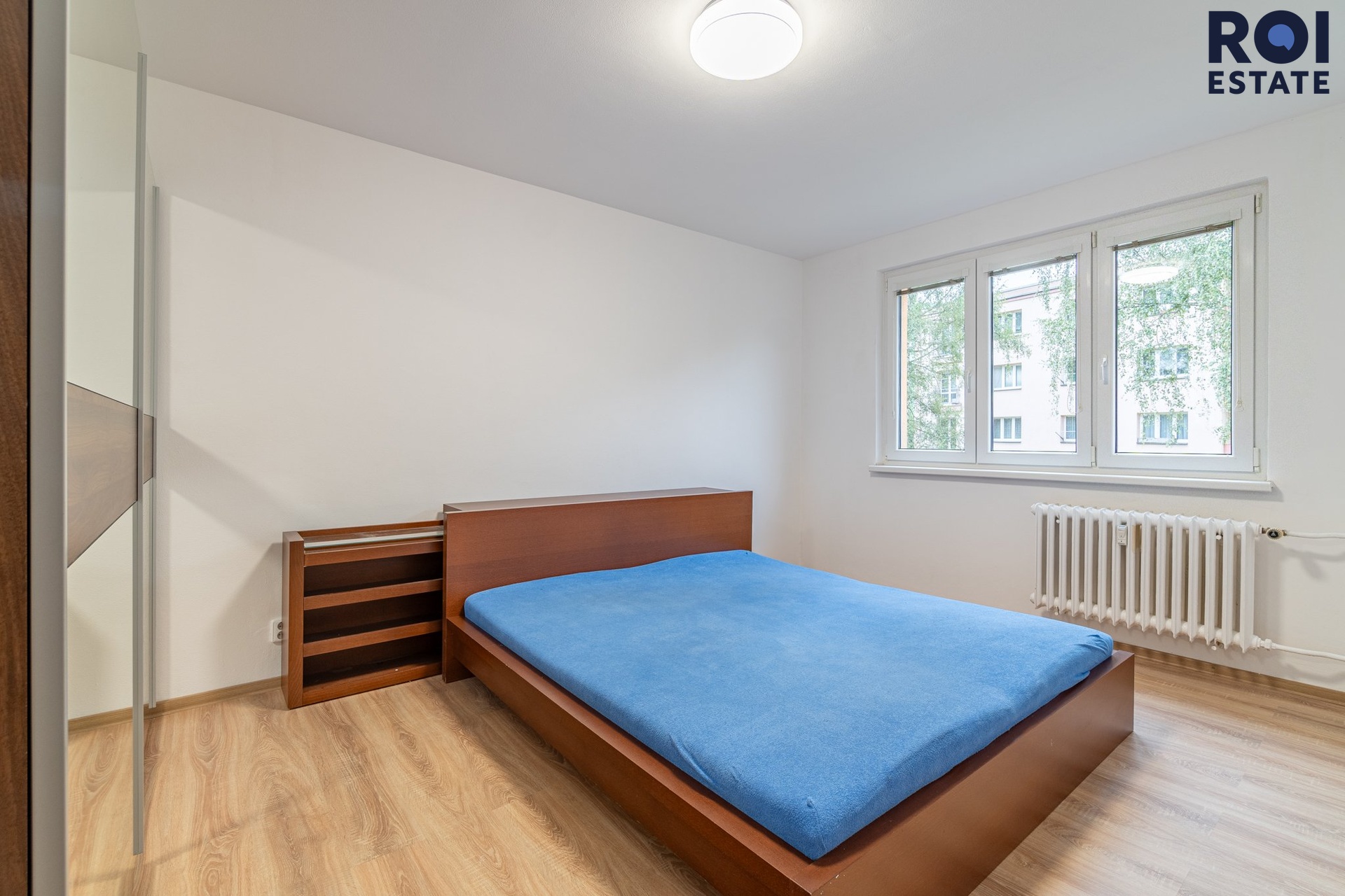 Nabízíme k prodeji zrekonstruovaný byt 2+1 o rozloze 51 m2. Byt disponuje dvěma neprůchozími pokoji. Ložnicí s manželskou postelí, nočními stolky, a šatní skříní a obývacím pokojem se vstupem na lodžii, ve kterém najdete dvě komody a skříň. Další úložný prostor nabídne chodba s vestavěnou šatní skříní odkud se dostanete na samostatnou toaletu, do koupelny se sprchovým koutem a pračkou, a nakonec do kuchyně, která je vybavena vestavěnou myčkou na nádobí, mikrovlnou troubou, el. troubou s plynovým sporákem a kombinovanou lednicí s mrazákem. Zajisté uvítáte i jídelní stůl se židlemi.