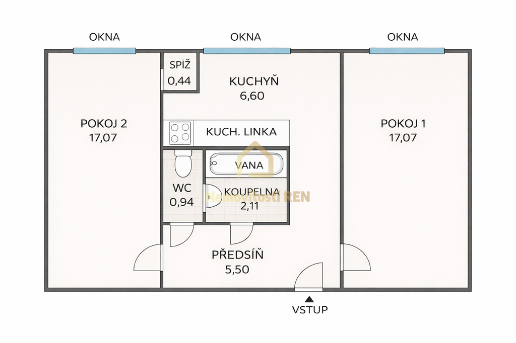 Byt o celkové ploše 53 m2, má praktickou dispozici s neprůchozími pokoji, což zajišťuje dostatek soukromí a pohodlí pro každodenní bydlení. Dispozice je vhodná jak pro vlastní bydlení, tak i jako investice k pronájmu.