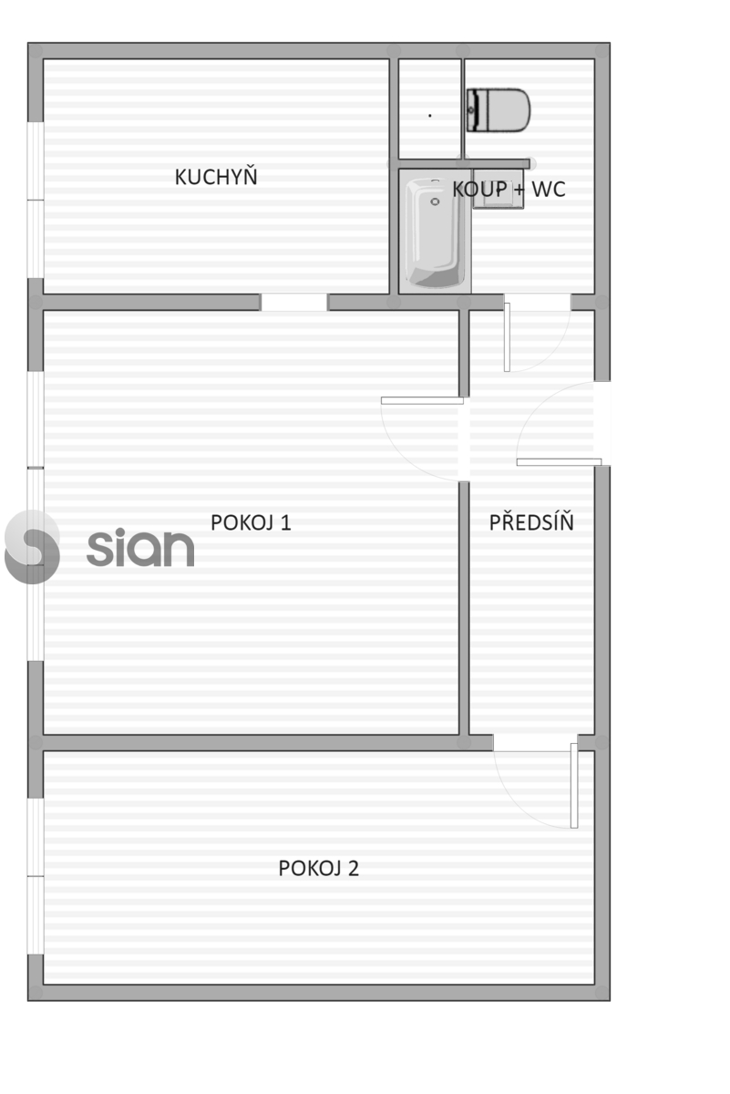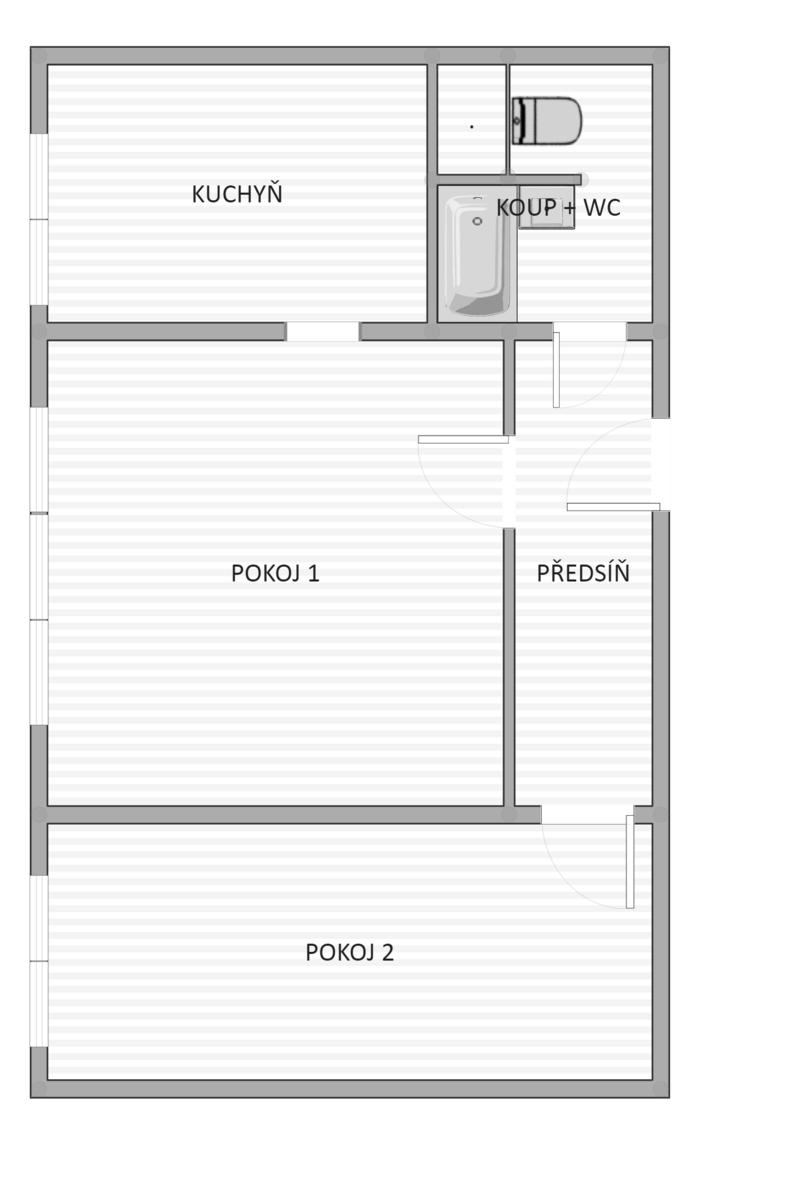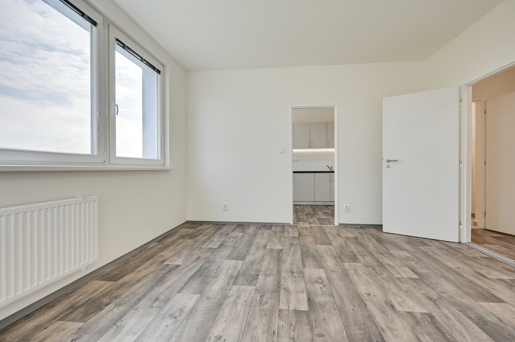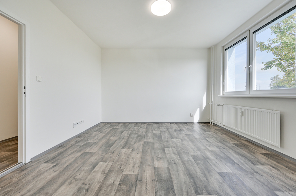 Dispozice bytu zahrnuje centrální obývací pokoj s přístupem do prostorné kuchyně, samostatnou neprůchozí ložnici a předsíň. K bytu náleží sklepní kóje. Byt je momentálně obsazen platícími nájemci, kteří by v bytě rádi pokračovali, ale není to podmínkou.