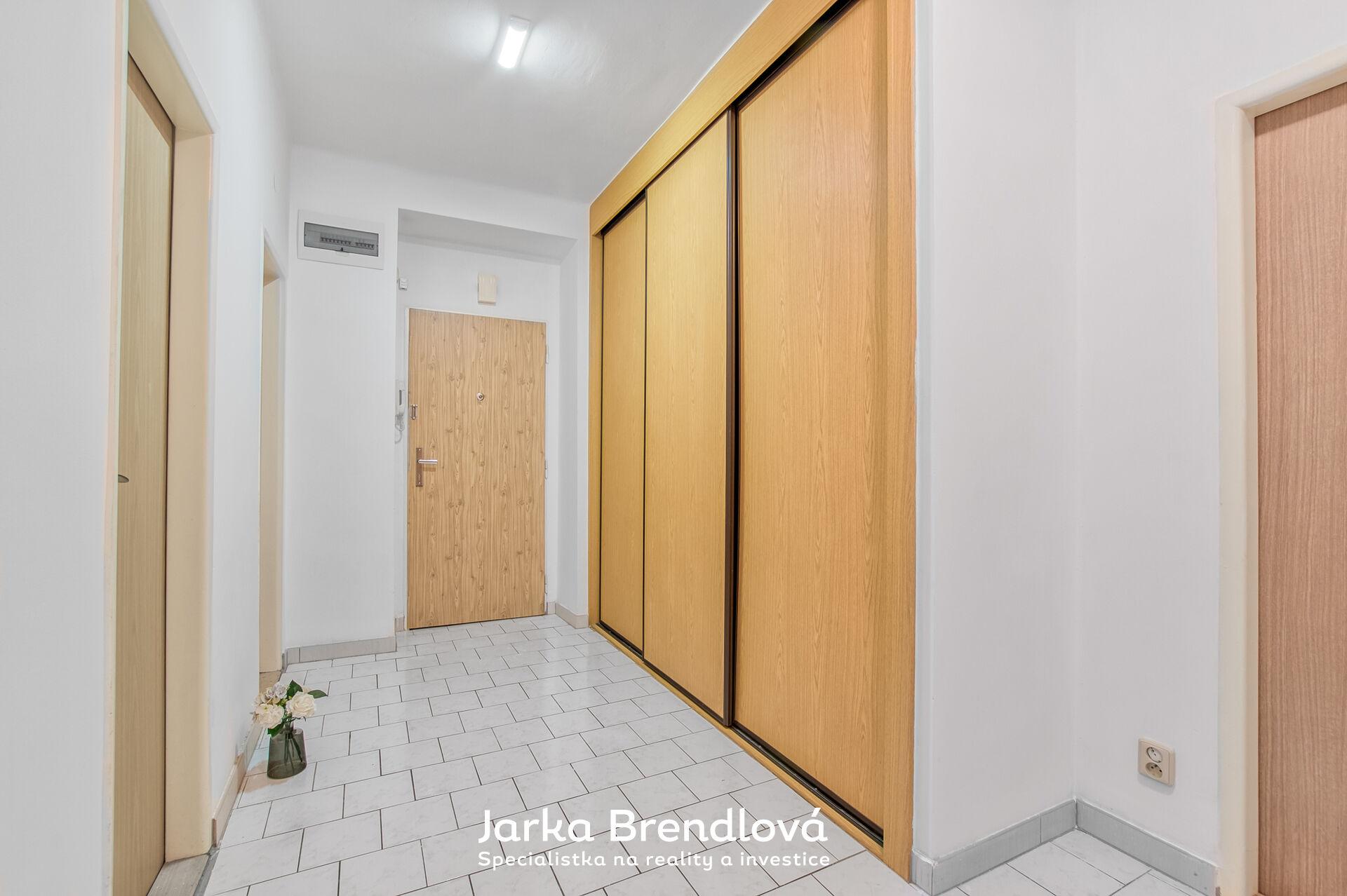 Praktické dispoziční řešení bytu zajišťuje dostatek prostoru pro pohodlné bydlení. Zahrnuje předsíň se zabudovanými vestavěnými skříněmi a samostatnou komoru, kterou můžete využít jako další úložný prostor. Z chodby vstoupíte do neprůchozího pokoje a dále do prostorného obývacího pokoje, který je propojen s kuchyní. Byt disponuje koupelnou s vanou a samostatnou toaletou.