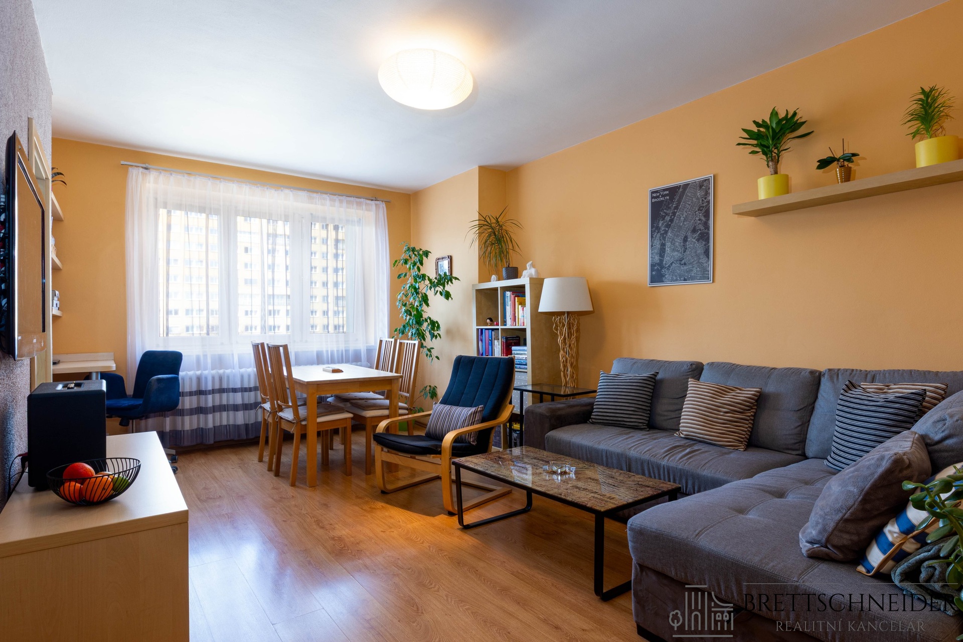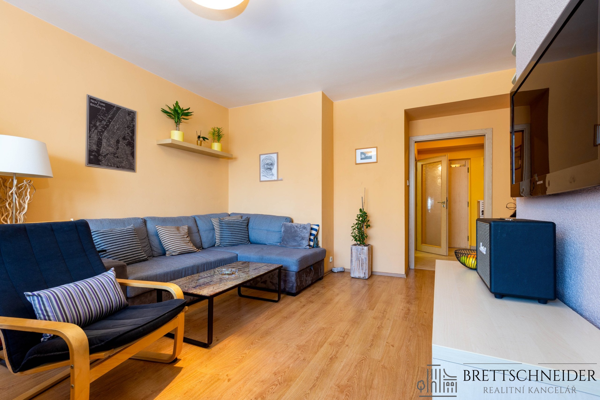 obývací pokoj s kuchyňským koutem, samostatnou ložnici, lodžii s příjemným výhledem, koupelnu a WC, praktické dispoziční řešení bez zbytečných ztrát metrů!