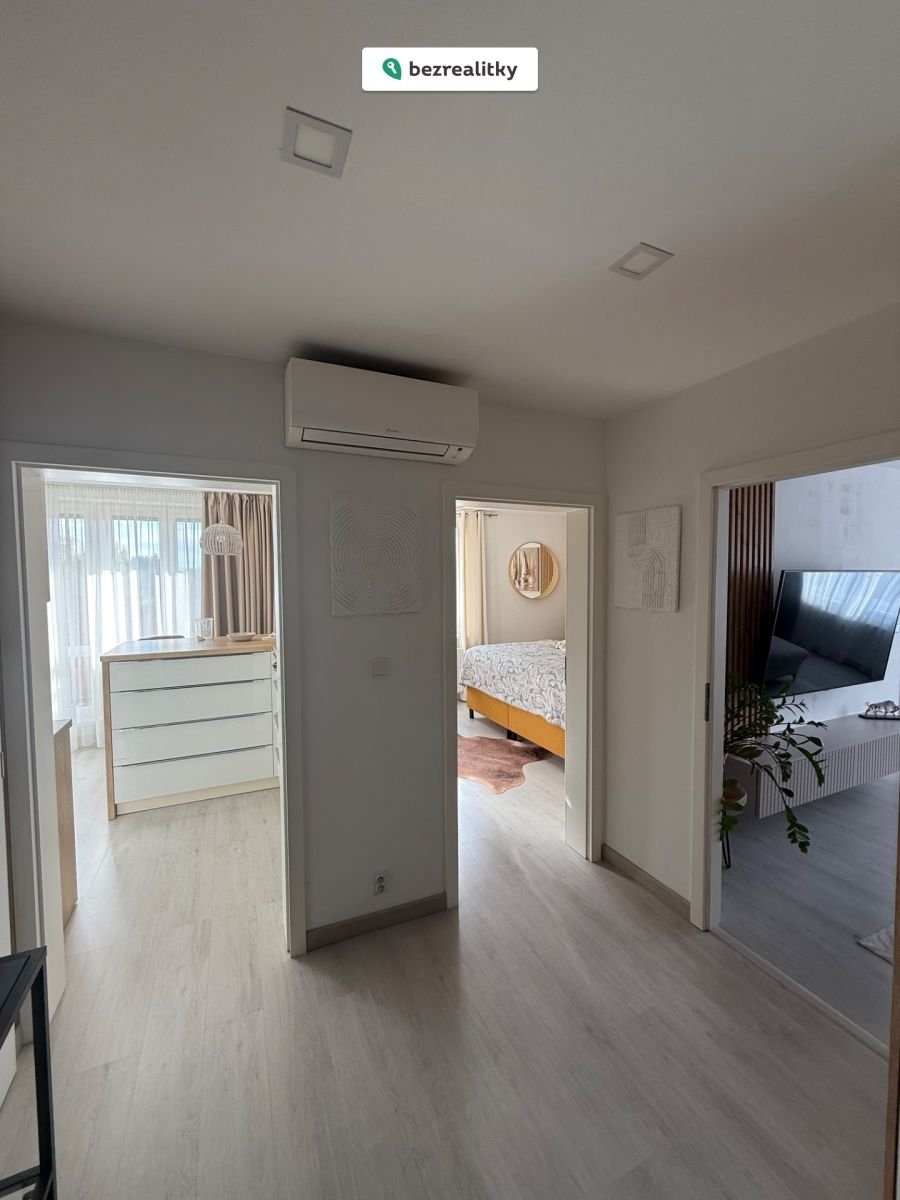 Interiér prošel kompletní moderní rekonstrukcí s důrazem na kvalitu a detail. Součástí vybavení je nábytek na míru, vestavěné spotřebiče značky Whirlpool a klimatizace, která zajišťuje komfort v letních měsících.
