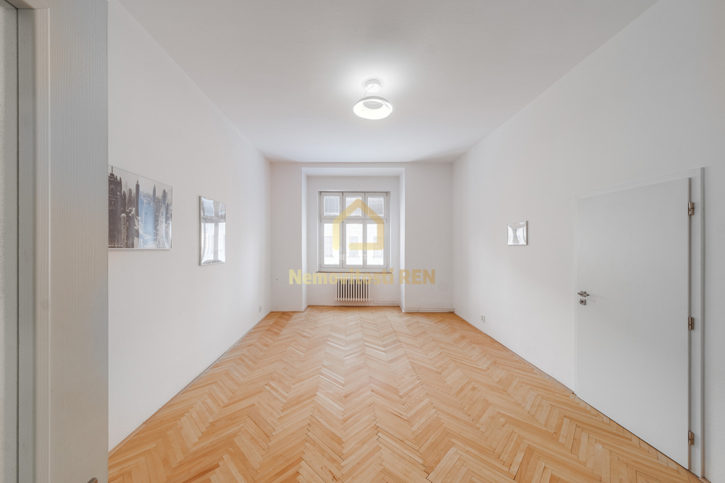 Byt zaujme svou vzdušností a autentickým charakterem. Vysoké stropy a velká okna přinášejí dostatek přirozeného světla a vytvářejí příjemnou atmosféru v celém interiéru. Dispozice 3+1 nabízí komfortní prostor jak pro rodinné bydlení, tak i pro individuální úpravy dle vlastních představ.