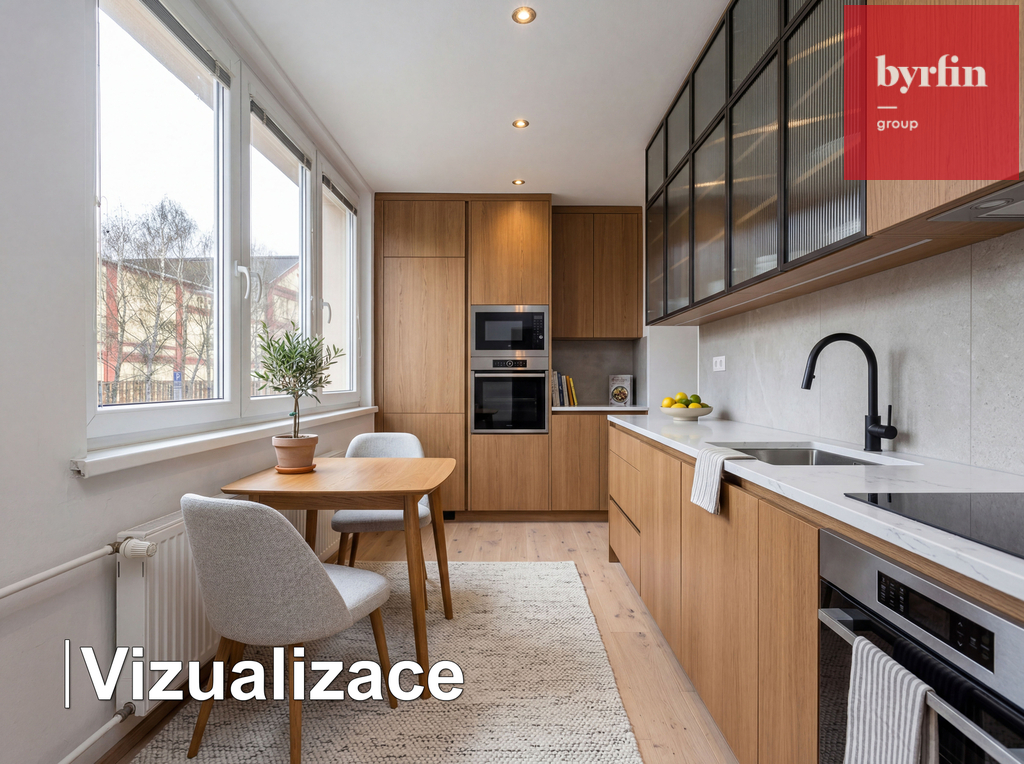 Byt je částečně po rekonstrukci, nicméně spíše určen k celkové modernizaci. To ale vnímejte jako výhodu – neplatíte za cizí kompromisy, ale máte možnost si vše udělat kvalitně, podle sebe a bez omezení.