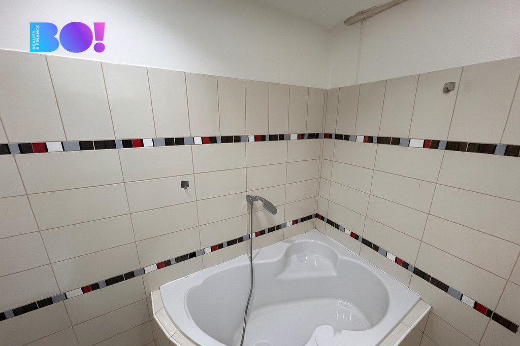 Druhý byt je také částečně vybavený kuchynským koutem, samostatnou koupelnou s rohovou vanou a WC.