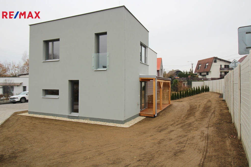 Dům kolaudovaný v roce 2025 se nachází na pozemku o celkové velikosti 332 m2, z toho 89 m2 je zastavěná plocha a 243 m2 je zahrada. Dále je součástí prodeje ideální polovina (142 m2) pozemku, na kterém je vybudováno parkoviště - parkování pro 2 auta ke každému domu.