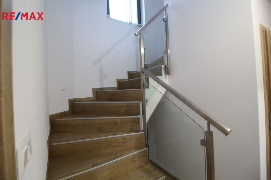 Na podlahách vinylové plovoucí podlahy Quick step. Interierové dveře značky Prüm.