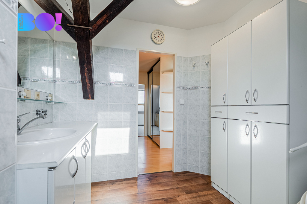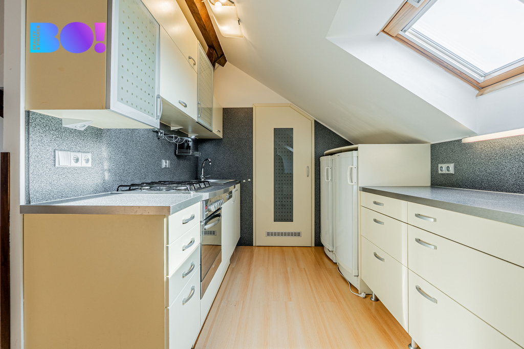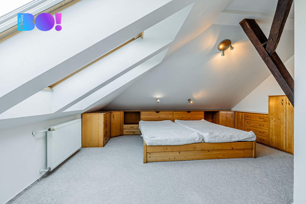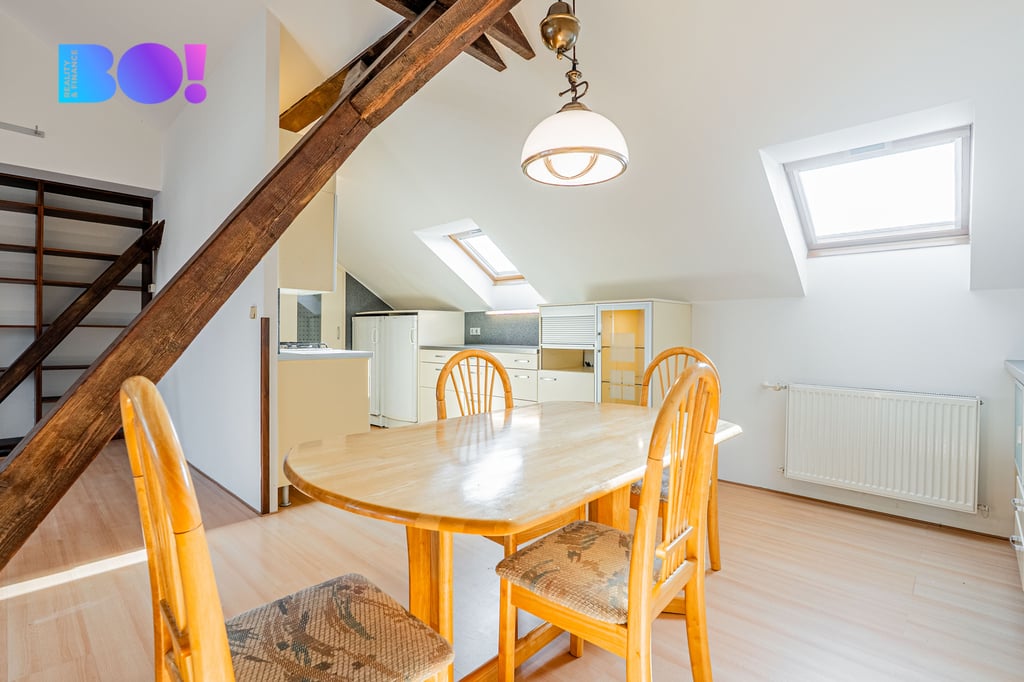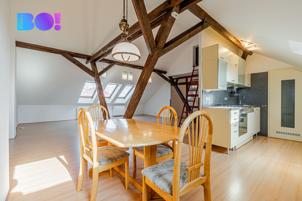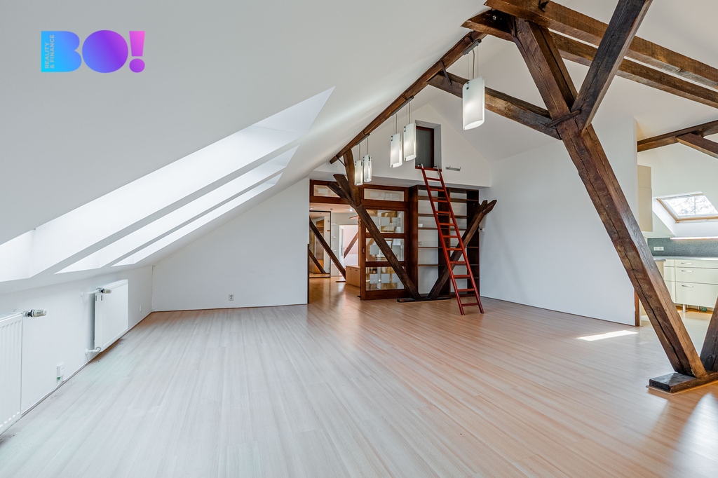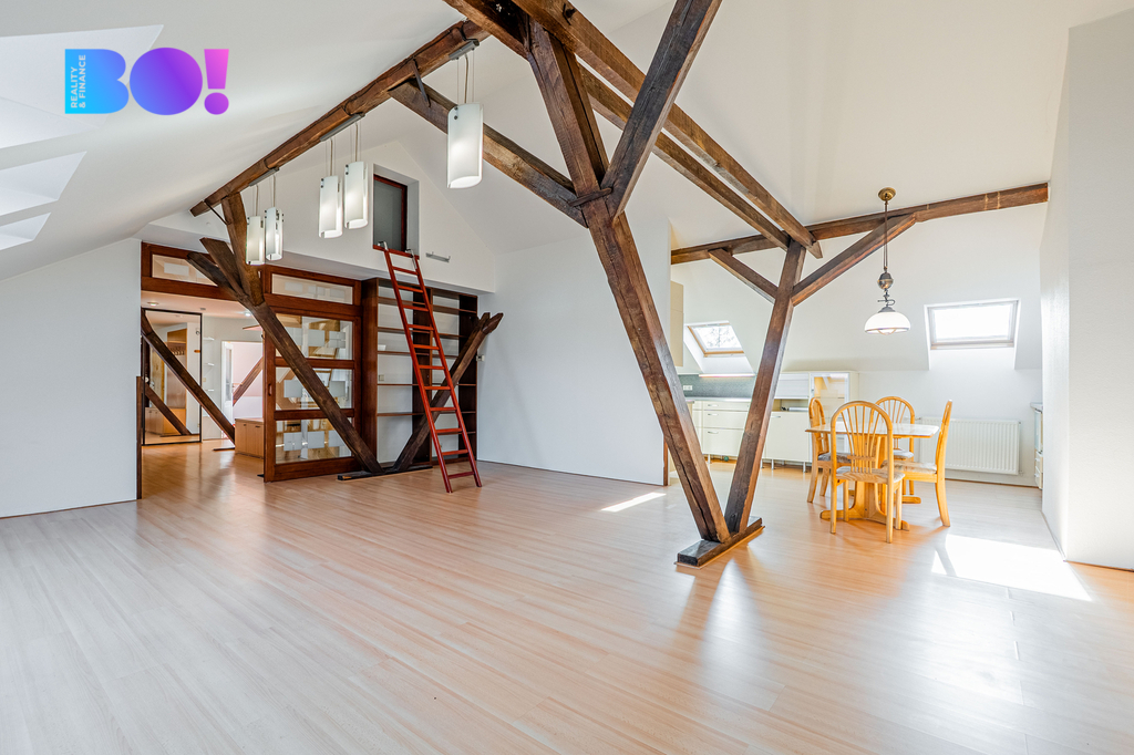 BO! reality Vám nabízí ke koupi atypický byt o dispozici 3+1 a celkové podlahové ploše 136m², v osobním vlastnictví. Součástí prodeje je řadová garáž, zastavěná plocha 23m², na stejné ulici, jen přibližně 70 metrů od vchodu domu.