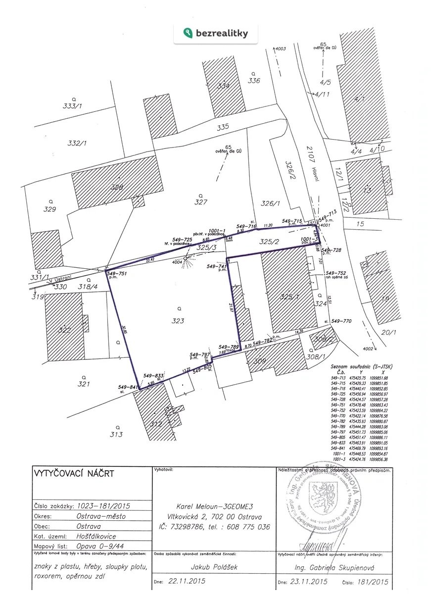 Stavební pozemek 991 m² v centru Ostravy–Hošťálkovic | Klidná lokalita | Sítě na pozemku | Přístup ze dvou ulic