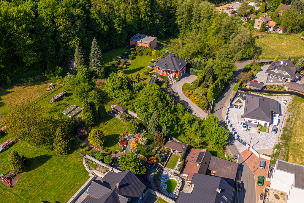 Pozemek je svažitý, což přináší řadu výhod – umožňuje originální architektonické řešení domu, například s garáží v podlaží nebo obytným suterénem s přímým vstupem na zahradu. Díky terénu si můžete vytvořit domov s nádherným výhledem a přirozeným soukromím.