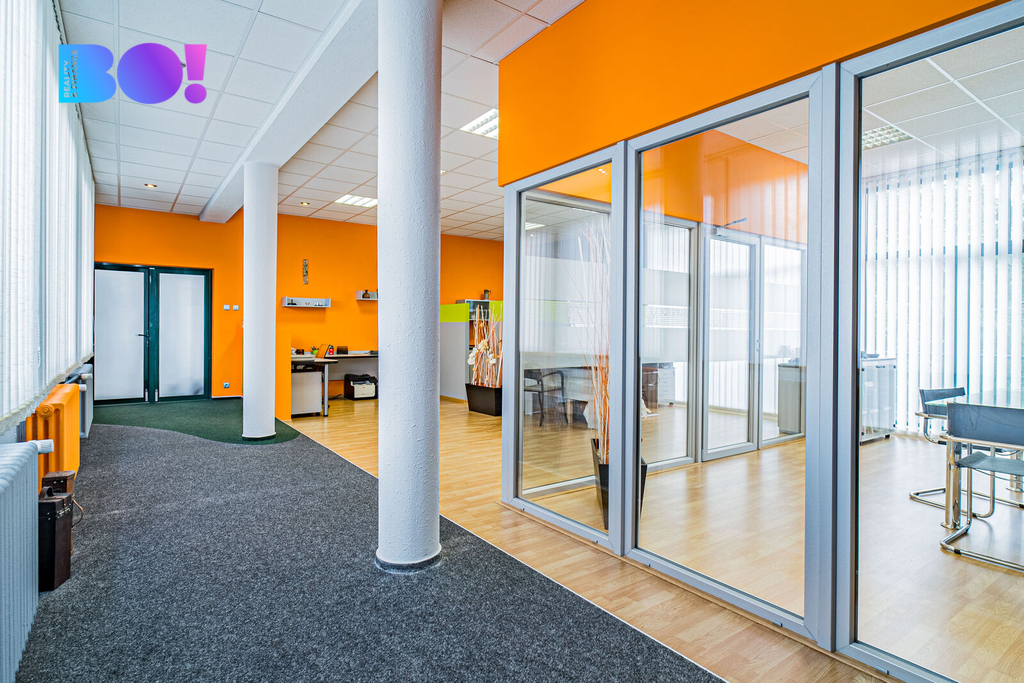• Prostor pro Vaše nápady: Dvoupatrová cihlová budova nabízí 10 světlých kanceláří, 5 koupelen a 6 samostatných toalet – maximální komfort a pohodlí pro Vás i Váš tým.