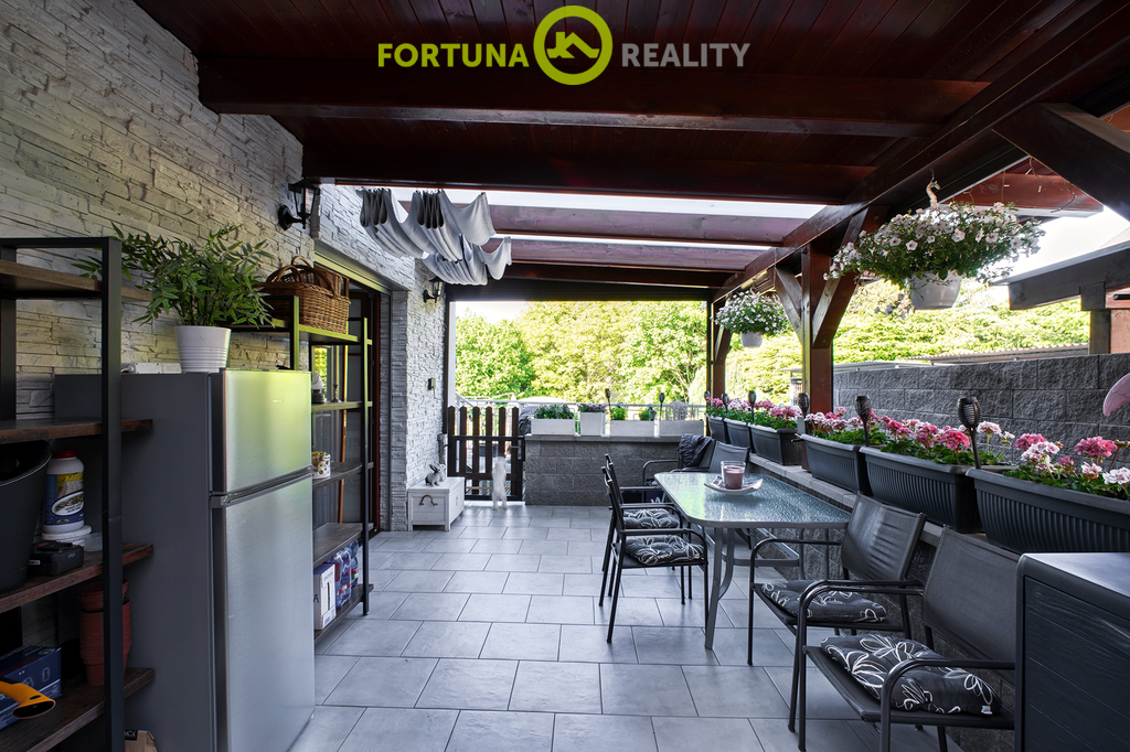 Exteriér nemovitosti je obklopen vzrostlou zelení a nabízí dostatek prostoru pro relaxaci či aktivní odpočinek. Zahrada s pergolami a krytým bazénem na pozemku, poskytuje idylické zázemí pro rodinné oslavy nebo klidné chvíle s knihou v ruce. Velký pozemek je také ideální pro možné budoucí úpravy a naplnění vlastních představ o zahradní architektuře.