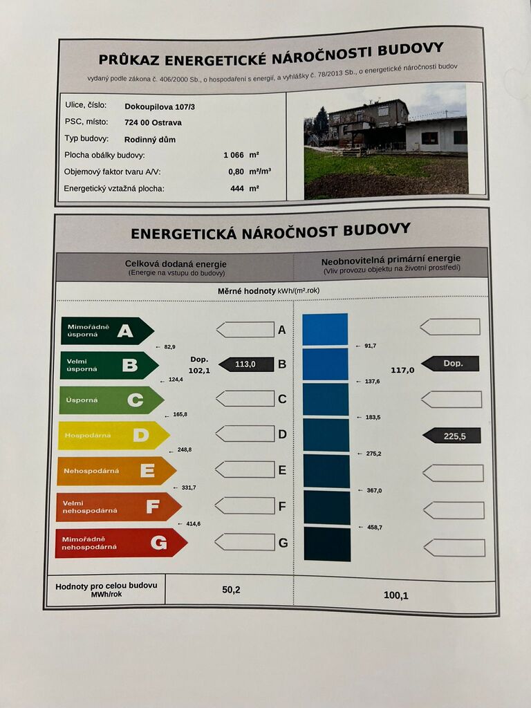Ukazatel energetické náročnosti budovy:113 kWh/m²