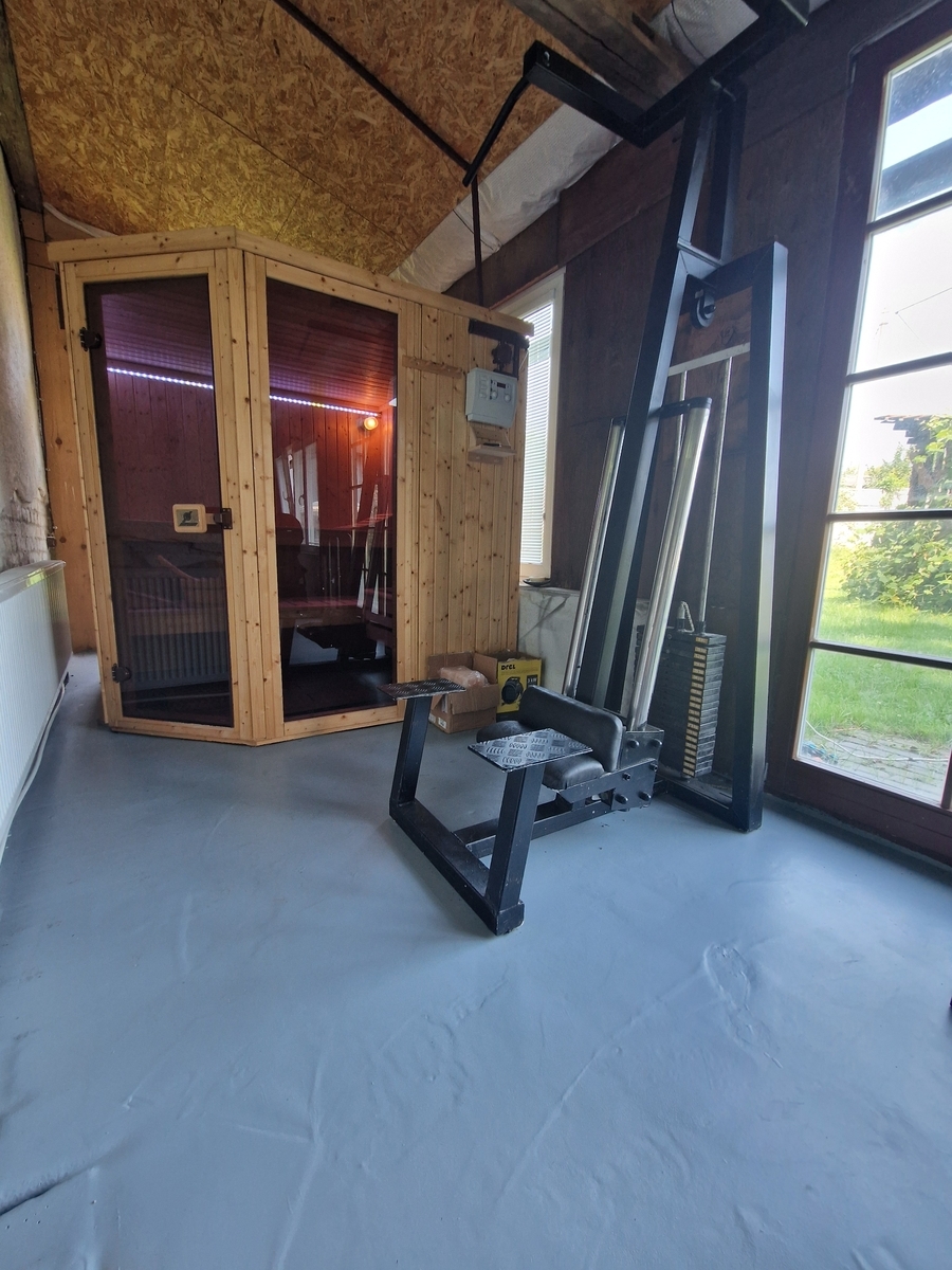 Součástí nemovitosti je terasa (4 × 3 m), bazén (7 × 3,5 m), finská sauna, domácí fitness, pergola a nově vybudované parkovací plochy pro 10 vozů (4 před domem, 6–8 uvnitř pozemku). Celý areál je oplocen novým betonovým plotem (cca 130 m) se dvěma vjezdy – 6m brána na dálkové ovládání a 5m manuální brána.