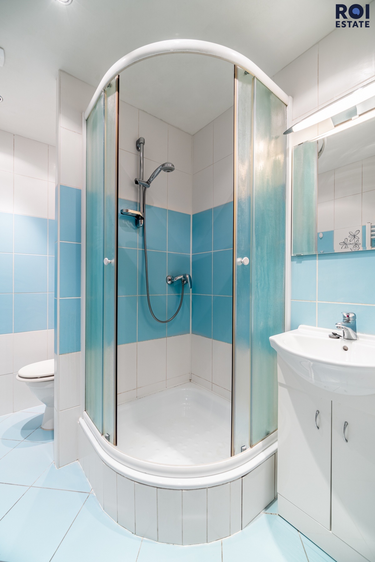 Po vstupu do bytu se ocitnete na poměrně prostorné chodbě, odkud se dostanete jak do koupelny se sprchovým koutem a toaletou, tak do kuchyně či pokoje. Kuchyň s jídelnou disponuje kromě moderní linky i kombinovanou lednicí a pračkou zasazenou do linky. Do pokoje bez problémů vměstnáte postel i sedací soupravu. S úložným prostorem si taky nemusíte dělat starosti, protože zde pro vás máme i šatní skříň.