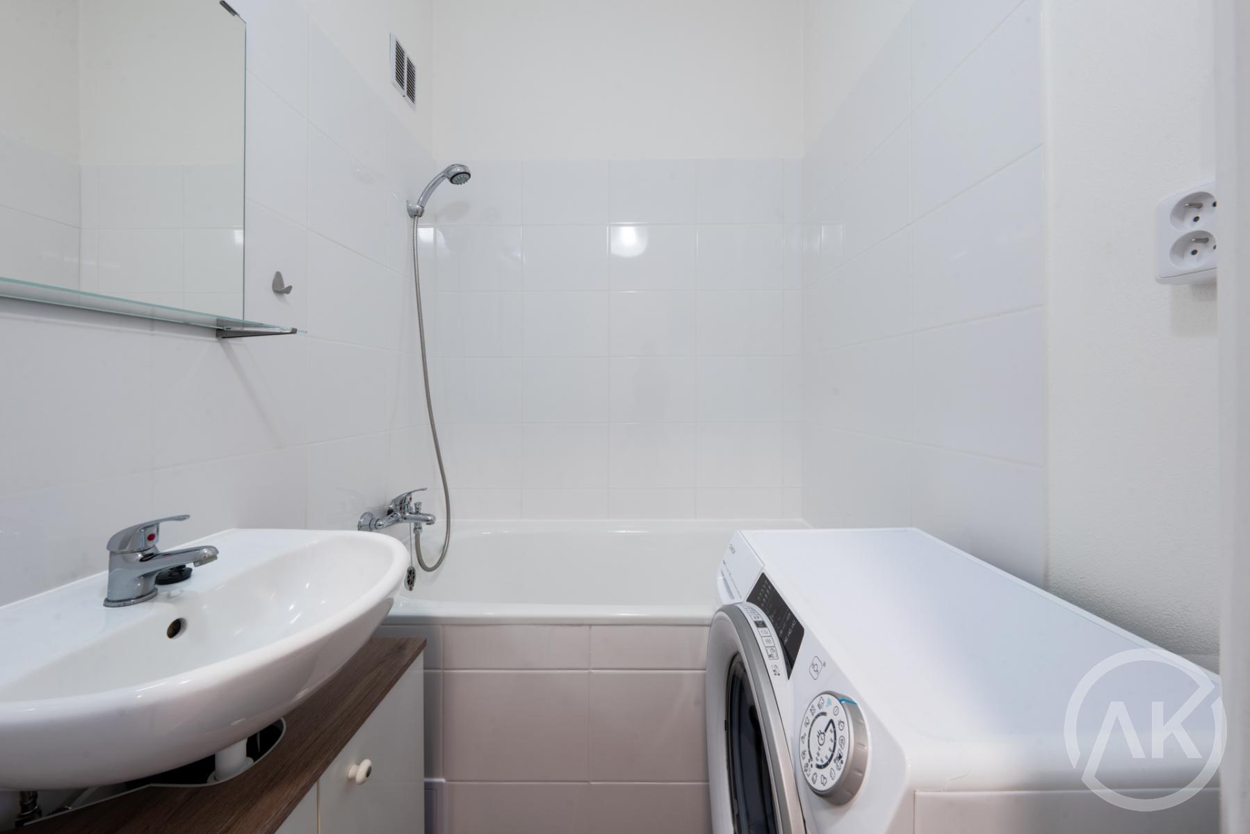 - slušná kuchyň v neutrálních barvách, pěkná koupelna a myčka s pračkou je v bytě připravená na každodenní využití,