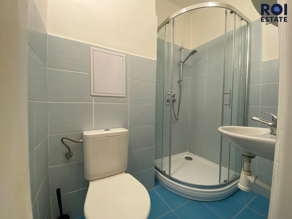 Byt nabízí velký pokoj, kuchyňský kout, chodbu a zrekonstruovanou koupelnu se sprchovým koutem a toaletou.