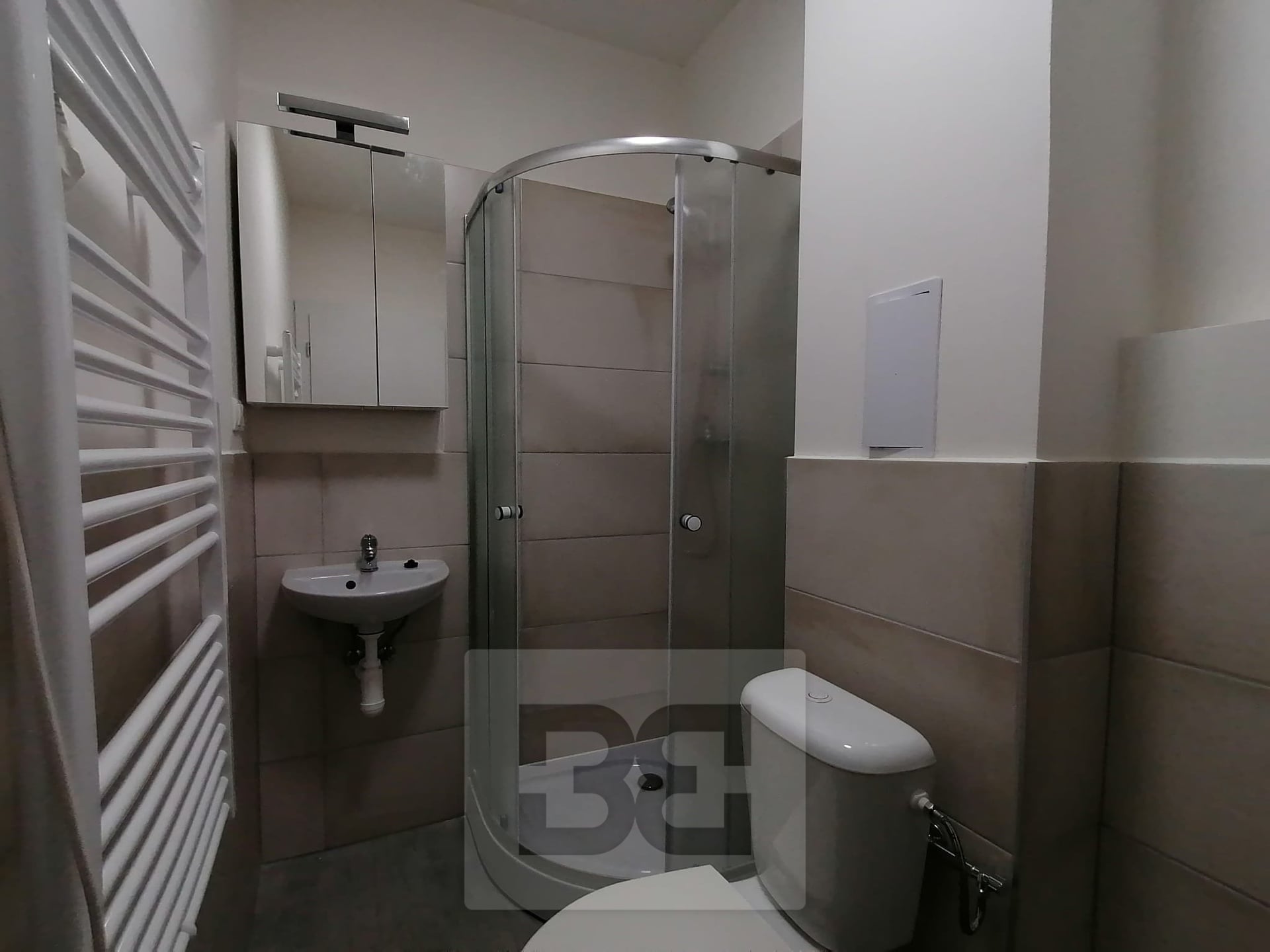 Byt je řešen jako moderní a praktické bydlení pro jednotlivce či pár. Z předsíně je vstup do koupelny se sprchovým koutem, toaletou a pračkou. Hlavní obytný prostor nabízí plně zařízený kuchyňský kout a dostatek místa pro obývací i spací část.