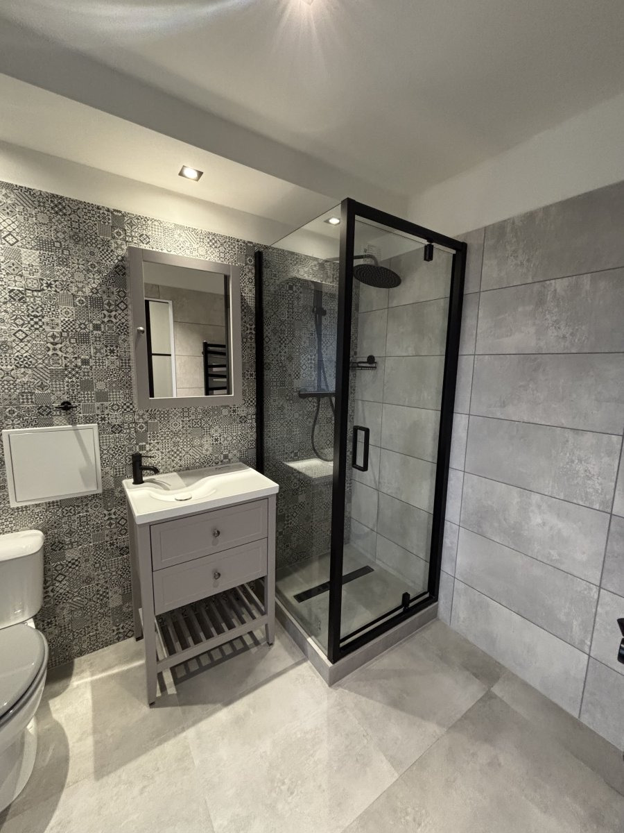 Kuchyně je vybavena moderní kuchyňskou linkou se spotřebiči – pračkou, ledničkou, troubou, varnou deskou a digestoří. V obývacím pokoji a ložnici jsou položeny plovoucí podlahy. Koupelna disponuje sprchovým koutem, umyvadlovou skříňkou a toaletou.