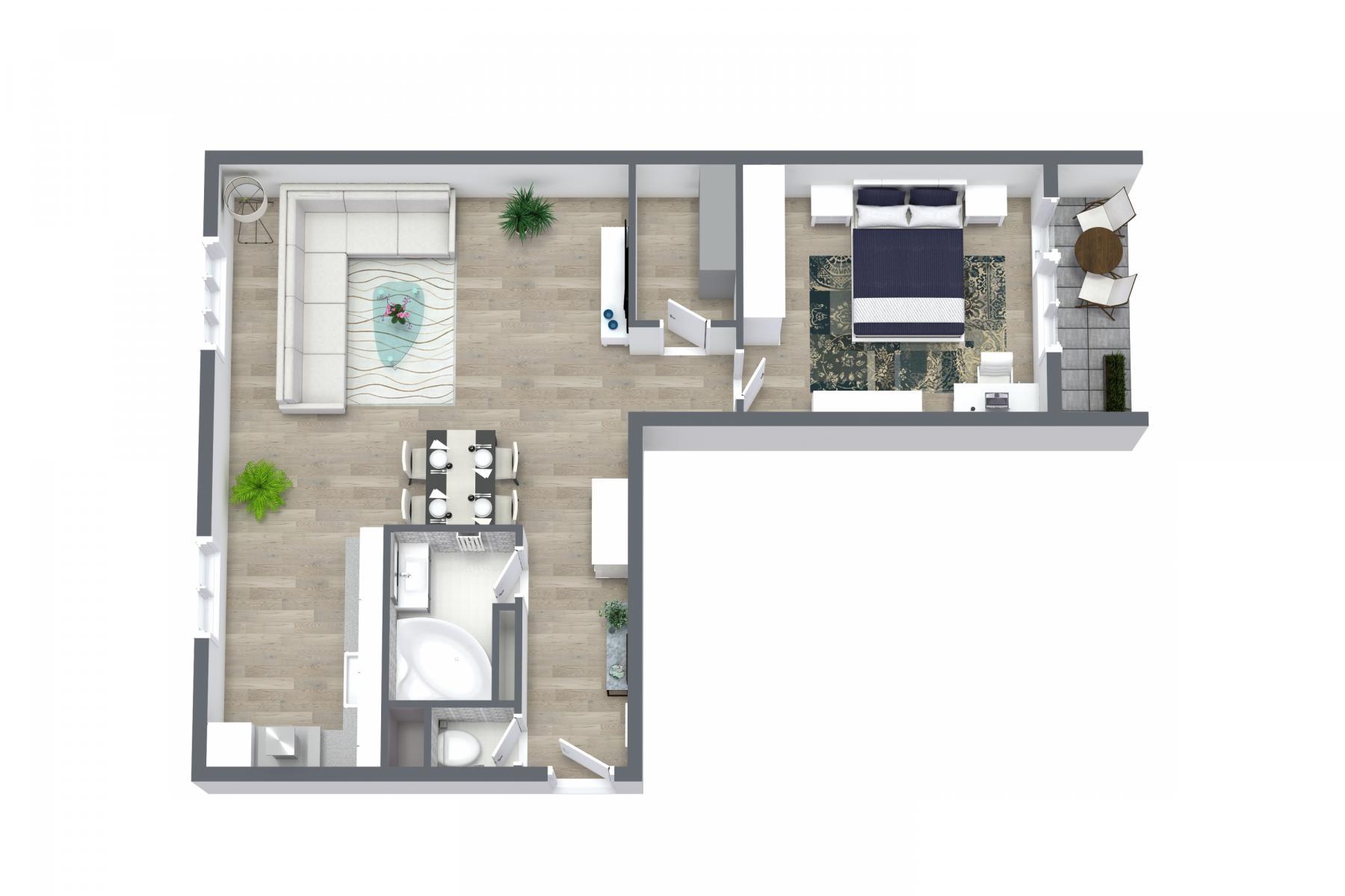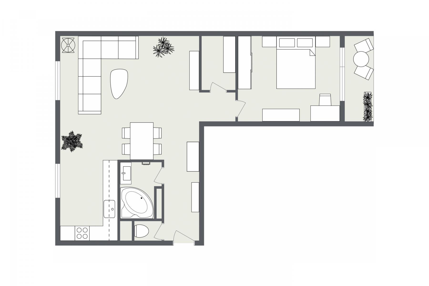 - dvojka s balkonem. Malým, ale přesto se to na sušení prádla, pár hipsterských rajčat a nebo cigáro sejde. Přece nejseš prase v bytě mi hulit nechceš,