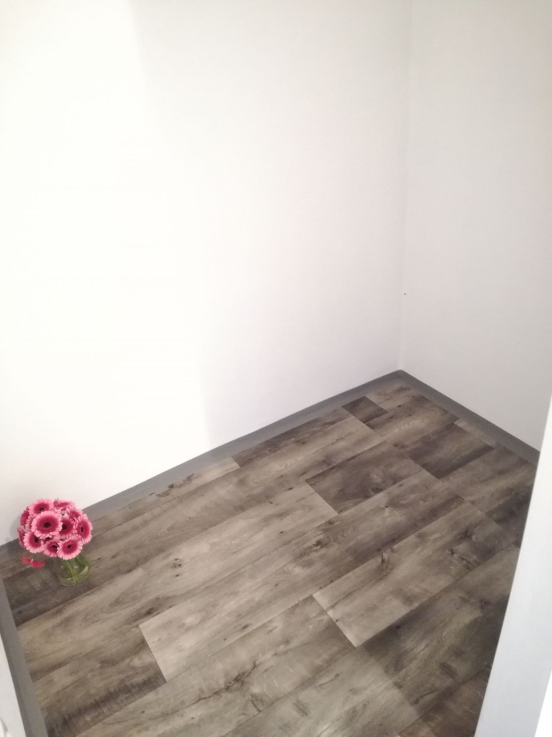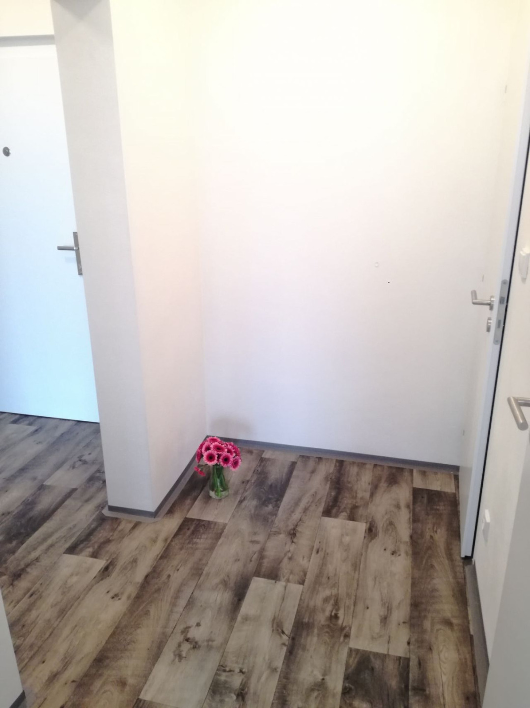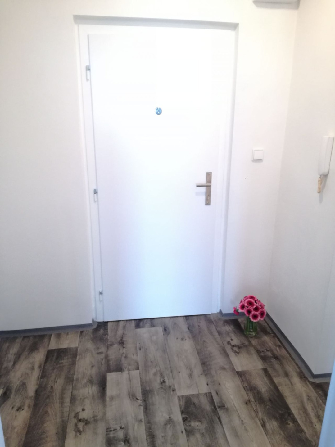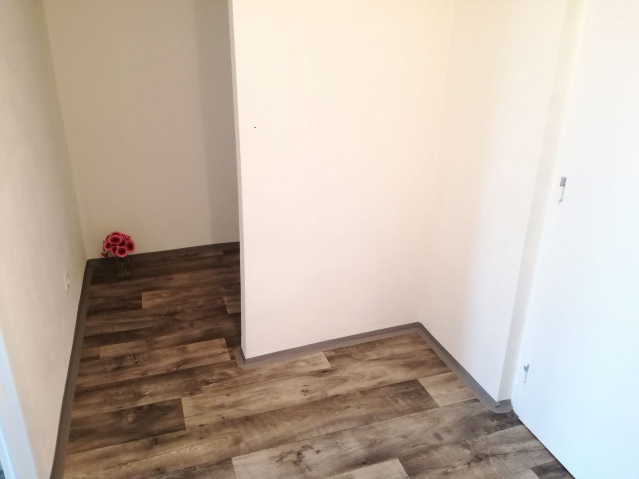 Interiér prošel v roce 2019 kompletní rekonstrukcí – nové zděné jádro, podlahy, rozvody, omítky i interiérové dveře dávají bytu moderní a čistý vzhled. Koupelna je vybavena vanou a umyvadlem s možností připojení pračky, toaleta je samostatná, což zvyšuje komfort bydlení.