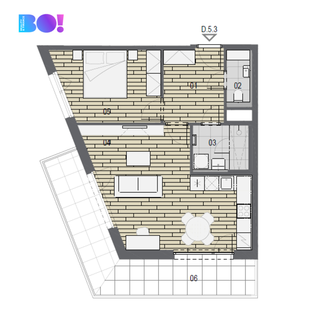 BO! Reality vám nabízí k pronájmu nový byt 2+kk s lodžií, umístěný v 5. nadzemním podlaží novostavby s výtahem. Byt je součástí prestižního a oblíbeného projektu Rezidence Nová Karolina, který se stal symbolem moderního bydlení v Ostravě.
