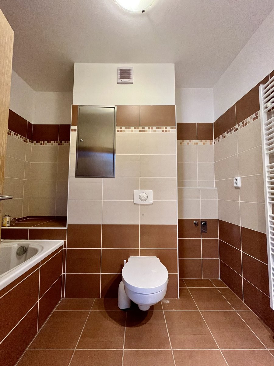 Byt je částečně vybavený – kuchyňská linka disponuje elektrickou troubou, sklokeramickou deskou s digestoří a myčkou. Koupelna s toaletou je společná a vybavená vanou. Samostatný pokoj nabízí dostatek prostoru i vestavěné šatní skříně.