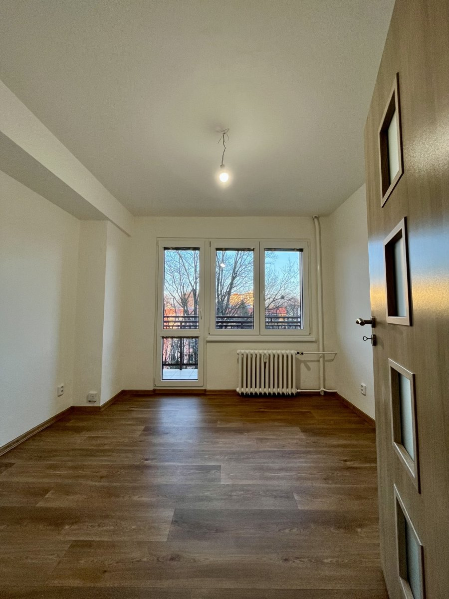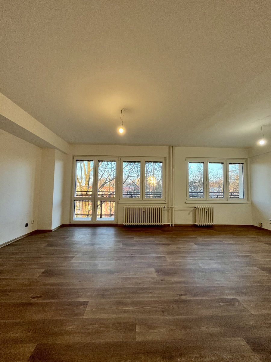 K dlouhodobému podnájmu nabízíme krásný a prosluněný byt o velikosti 3+1 o celkové výměře 74m2 ve čtvrtém patře panelového domu. K bytu náleží také sklep a dva balkony.