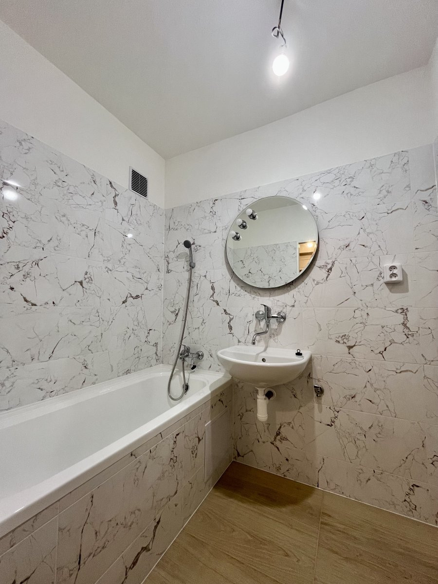 Moderně zrekonstruovaný byt nabízí dva neprůchozí pokoje, do kterých vstupujeme z prostorné chodby a jeden průchozí pokoj ze kterého se dostaneme do kuchyně a na jeden z balkonů.