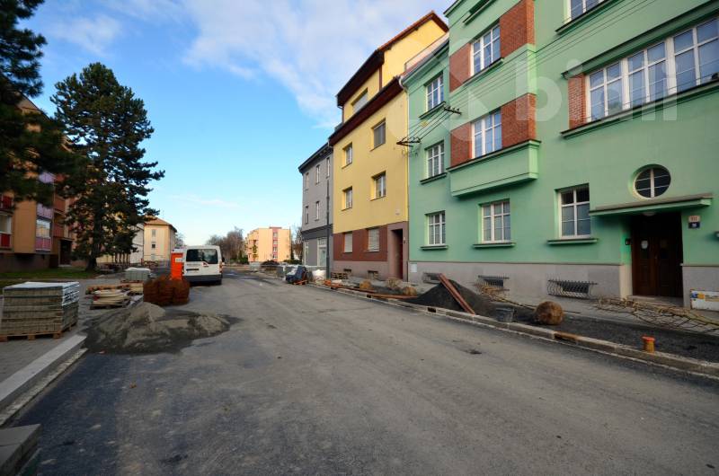 Ulice Přemyslovců prochází pokládkou nového povrchu vozovky a chodníků.