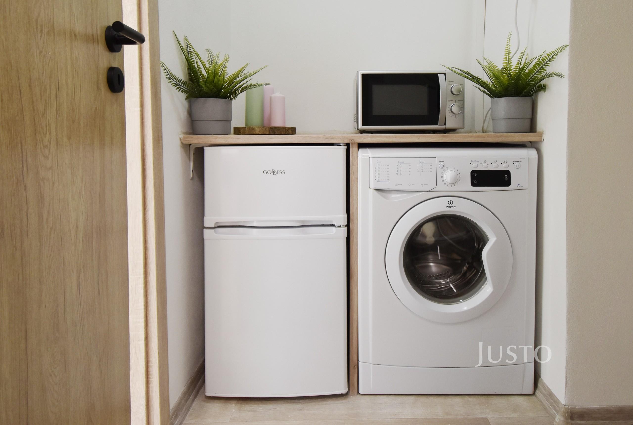 Předmětem pronájmu je garsoniéra o výměře 22 m², která byla před šesti měsíci rekonstruována. Jedná se o menší byt, ve kterém je ale vše, co od tohoto typu bytu budete potřebovat. V pokoji je k dispozici kuchyňská linka s elektrickým vařičem. V předsíni je umístěna pračka, lednička s mrazákem a mikrovlnka. V koupelně je menší vana, toaleta, umyvadlo se skříňkou a zrcadlem. K bytu náleží sklepní kóje v suterénu domu. Byt může využívat také společnou lodžii v mezipatře.