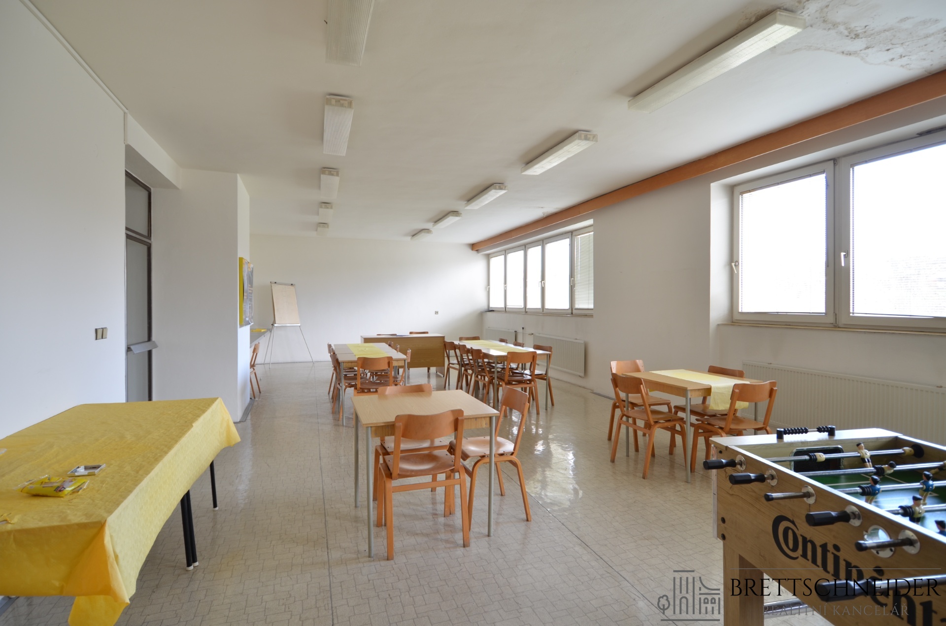 Součástí prostor pak je 2x WC se sprchovacími kouty, velká místnost, dříve užívána jako jídelna (78,88 m2), nyní možno použít jako konferenční místnost, pak dále jsou zahrnuty v pronájmu 2x skladovací místnosti (10 a 12 m2) a 1x šatna (2,7 m2).