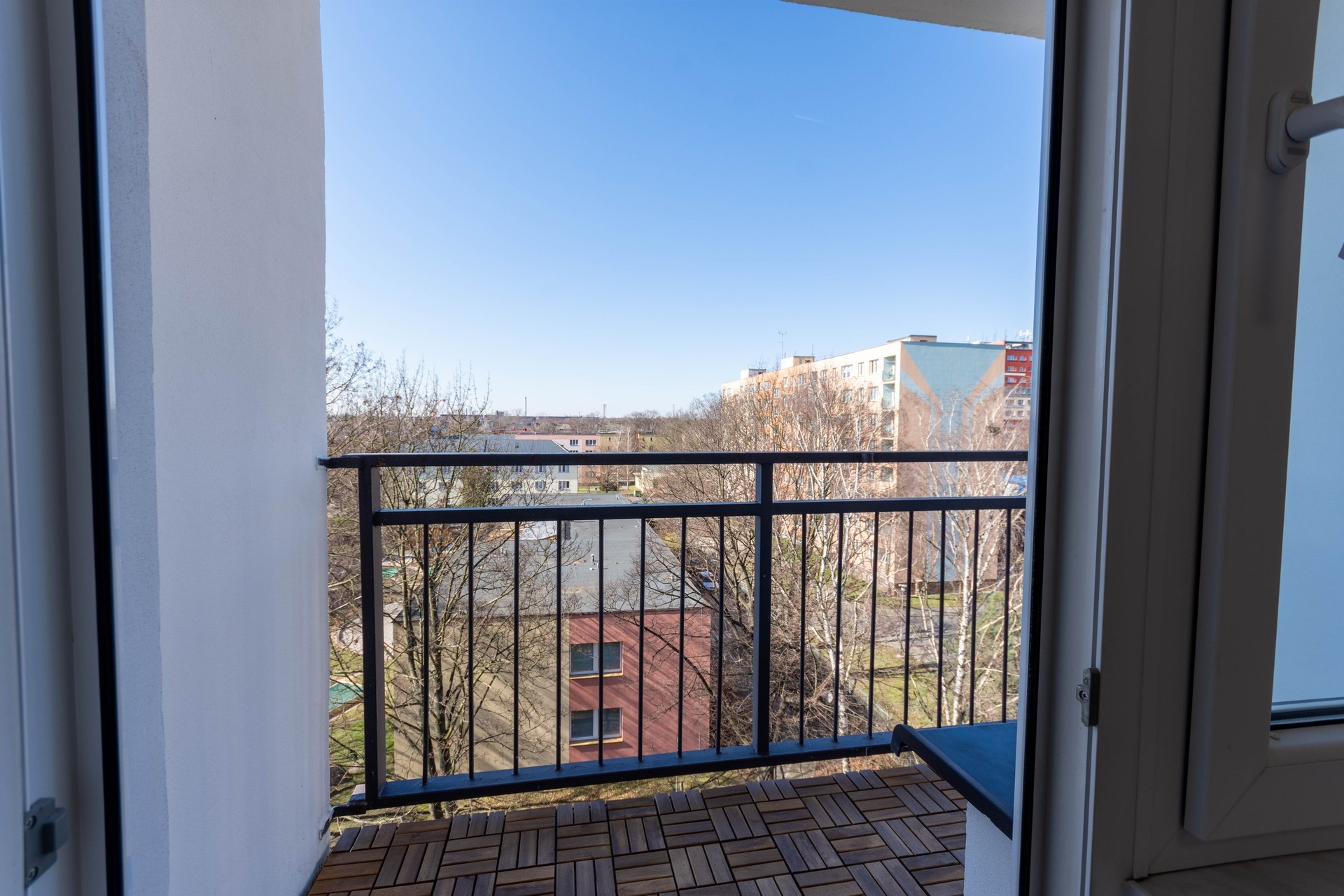 Součástí bytu je prostorná lodžie (3 m²) s příjemným výhledem do okolí, ideální pro odpočinek. K dispozici je rovněž sklepní kóje (1 m²). Byt je částečně zařízený, dominantu tvoří nová, plně vybavená kuchyňská linka včetně spotřebičů.