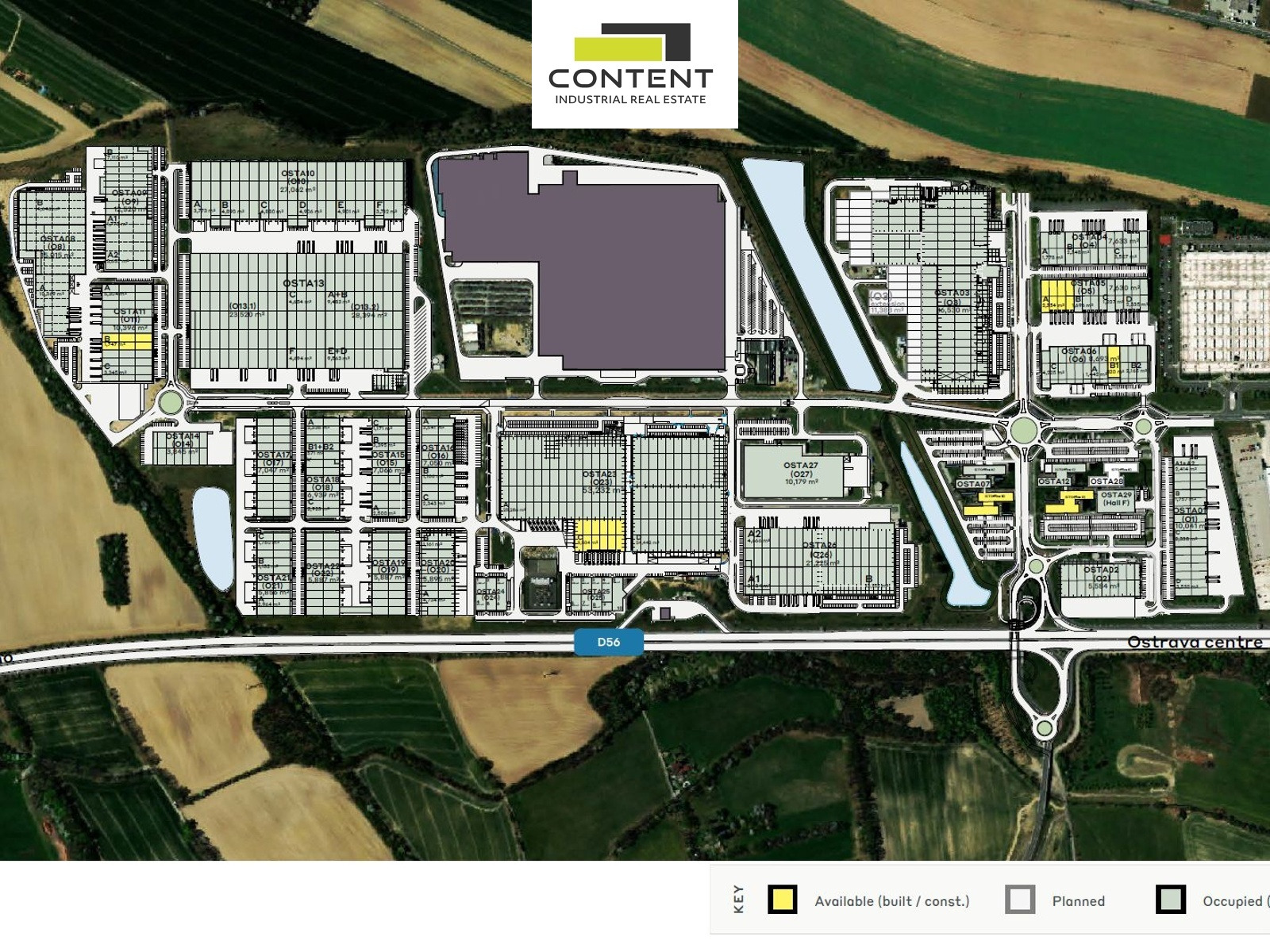 - v areálu ihned k dispozici 900 m² až 3504 m²