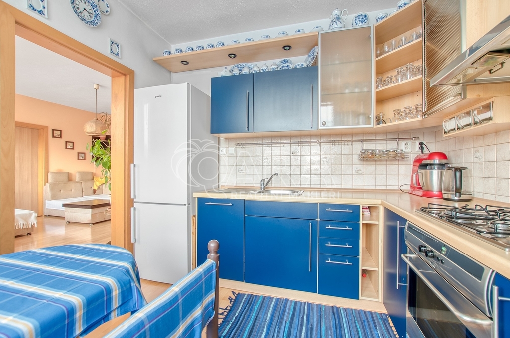 Rekonstrukce bytu proběhla v roce 2000. Bylo vybudováno zděné bytové jádro s koupelnou vybavenou vanou a se samostatnou toaletou. Součástí rekonstrukce byla také kuchyňská linka se spotřebiči, nové omítky ve všech místnostech, nové dřevěné obložky a plovoucí podlahy v obývacím pokoji, které byly částečně vyrovnány nivelací. V jádře jsou rozvody elektřiny vedeny v mědi, v ostatních místnostech jsou rozvody původní v hliníku. Byt není nový, ale je udržovaný, zachovalý a plně obyvatelný bez nutnosti okamžitých investic. K bytu náleží také vlastní prostorná komora.