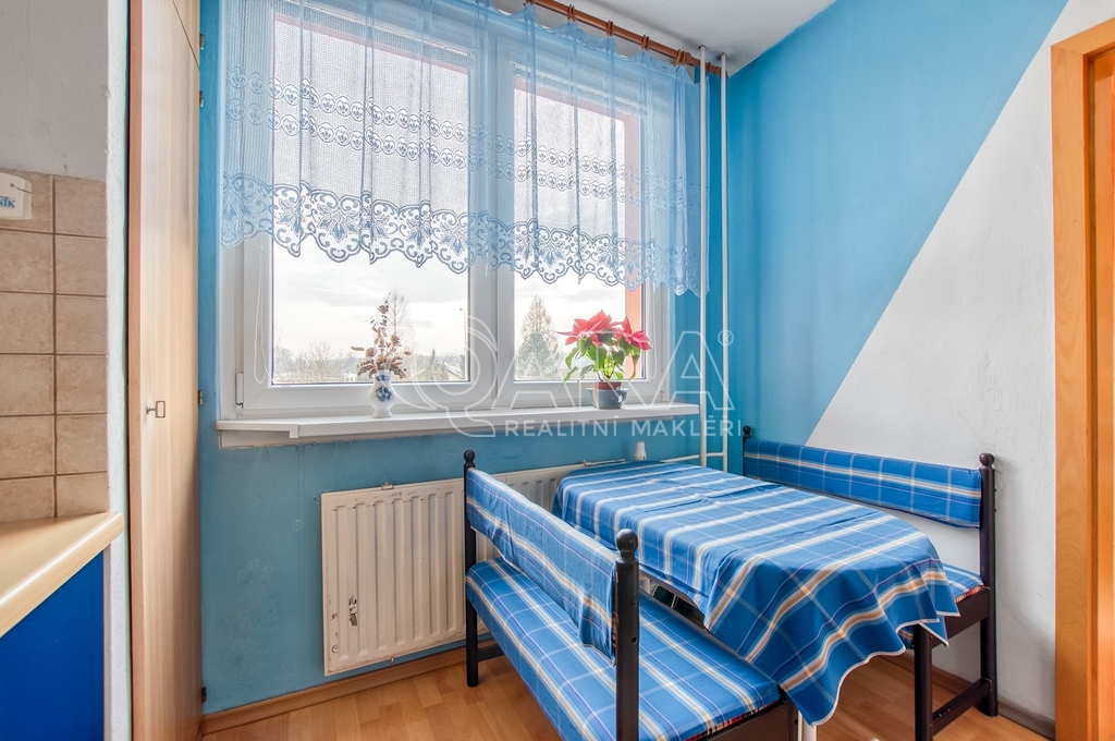 Byt má celkovou užitnou plochu přibližně 80 m² včetně lodžie a nabízí dispozici, která dnes není běžná. Čtyři samostatné pokoje poskytují dostatek prostoru pro rodinné bydlení i pro dlouhodobý pronájem. Orientace na jihozápad zajišťuje dostatek denního světla a příjemné výhledy do okolní krajiny i ze druhého patra domu.