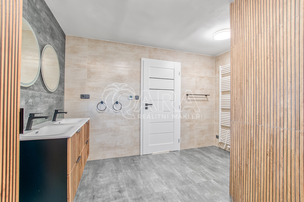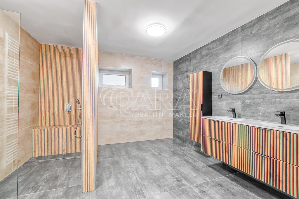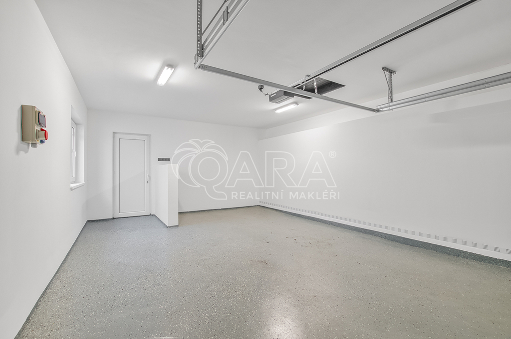 Celková užitná plocha domu včetně garáže, dílny, terasy a balkónů přesahuje 280 m². Součástí nemovitosti je také prostorná garáž o velikosti 30 m² s pojezdovými vraty, která poskytne dostatek místa nejen pro parkování, ale i pro uložení sezónních věcí.